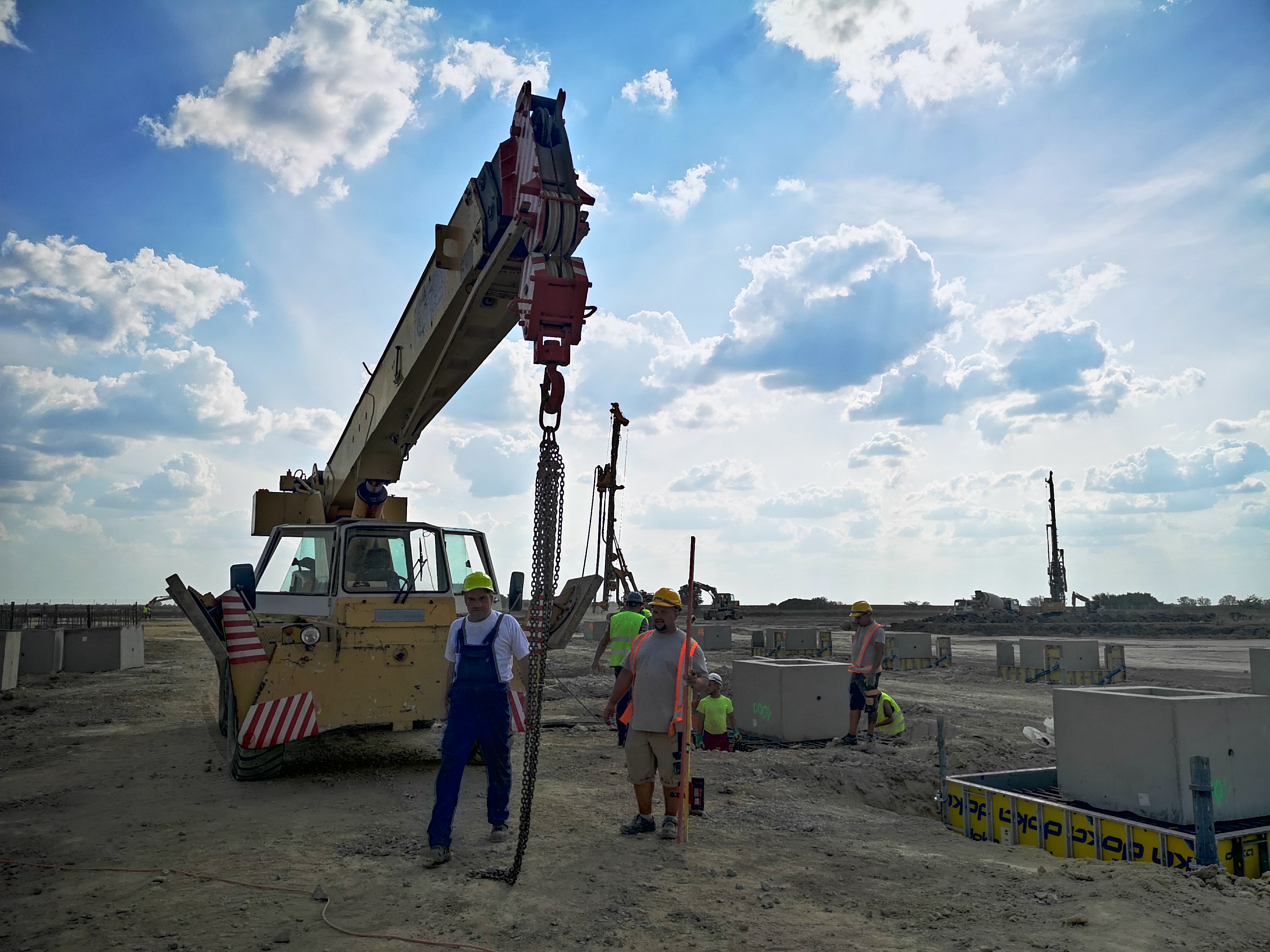 匈牙利外交与对外经济部长西亚尔多·彼得(左一)、匈牙利国会议员波山·拉斯洛(右二)、德布勒森市长鲍普·拉斯洛(右一)和恩捷集团海外项目总监石恒光(左二)共同奠基。