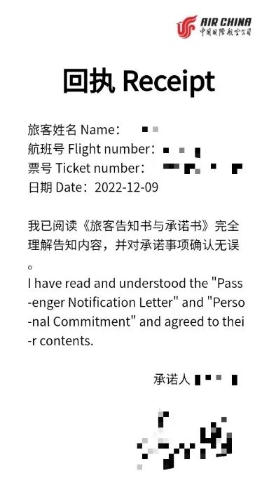 确认信息无误后就可以在防疫健康码国际版微信小程序上填写资料、上传图片了。大使馆审核过后可以获得绿码,小编的资料审核了20分钟左右就收到了绿码。点击国航发送的短信链接,填写《旅客告知书与个人承诺书》后保存回执,后续会用到。
