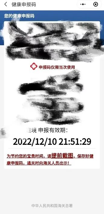 办理值机排队时工作人员测了我们的体温并检查了绿码(截屏无效)和回执(截屏有效),登机之前再次查验了这两项以及机票。值机拿到机票确认座位号后就可以登录海关旅客指尖服务微信小程序,如实填报个人健康情况以及整个旅程的相关信息,提交资料后获得一个健康申报码(截图有效),下飞机通关时需要向海关人员出示。