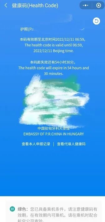 1.查阅回国的防疫要求,中国驻匈牙利大使馆公众号上有非常详细的介绍(驻匈使馆:关于调整自匈牙利赴华人员申请健康码有关要求的通知),其中最重要的是行前检测要求的变化:由之前的48小时两次核酸(两次检测须在不同检测机构进行,采用两种不同试剂,采样时间间隔24小时以上)调整为航班起飞时间前48小时内1次核酸检测(RT-PCR),为我们节省了很多时间和精力。