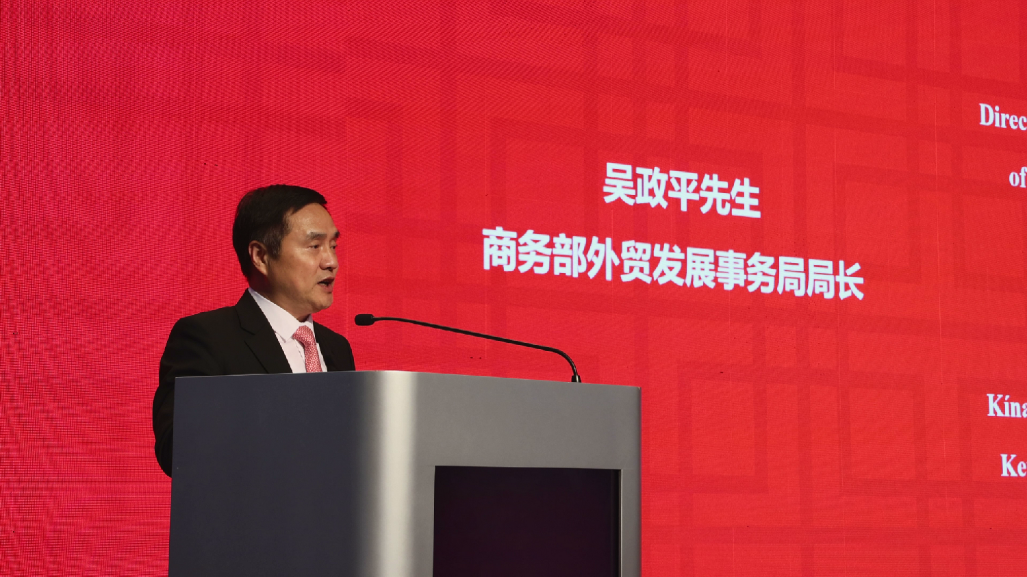 中国商务部外贸发展事务局局长吴政平在开幕式致词。