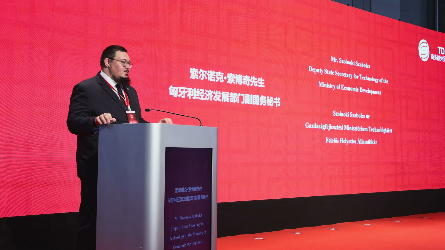 匈牙利经济发展部副国务秘书索尔诺克·索博奇在开幕式致词。