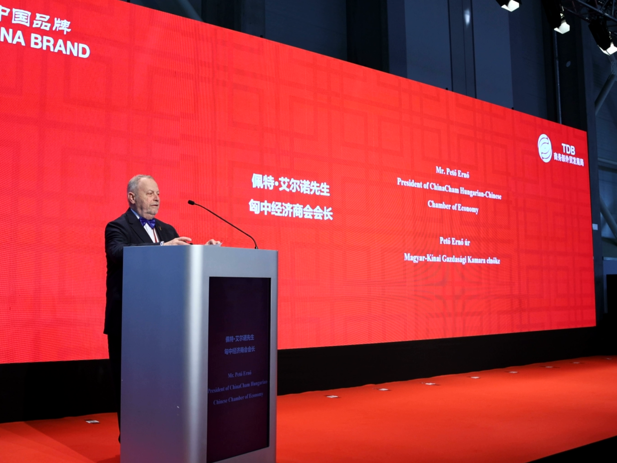 匈中经济商会会长佩托·埃尔诺在开幕式上致词。