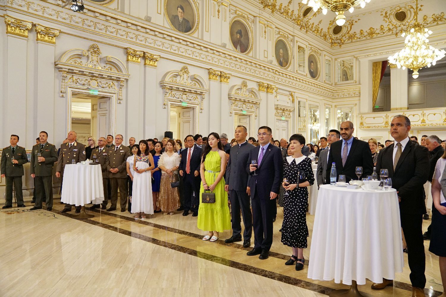 招待会还进行了《为了和平,命运与共——维护和平的中国军队》主题图片和《我在》宣传短片放映活动,来宾纷纷祝贺中国人民解放军建军96周年,盛赞中国国防和军队现代化建设取得的伟大成就,以及中国军队为全世界提供国际维和、人道救援、护航、抗疫援助等国际公共安全产品的卓越贡献,祝愿中匈全面战略伙伴关系深入发展、两军合作再结硕果。