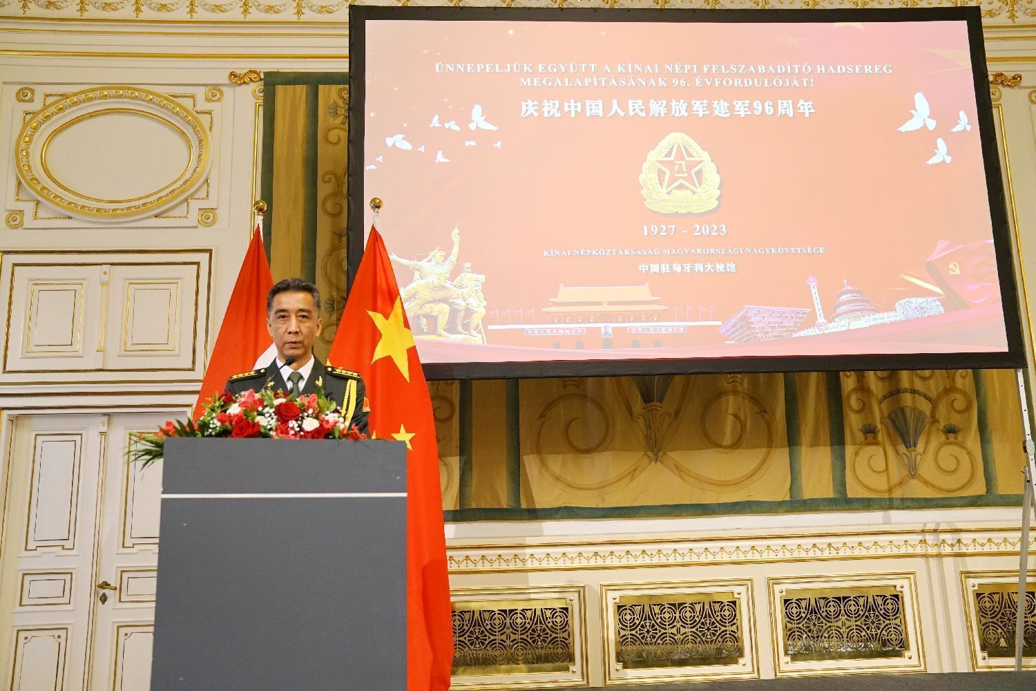7月26日,驻匈牙利使馆国防武官孔新民大校举行招待会,热烈庆祝中国人民解放军建军96周年。