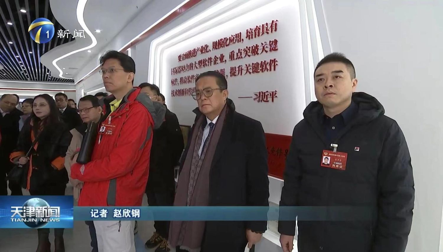 天津电视台新闻报道两会代表考察天津开发区高新企业。