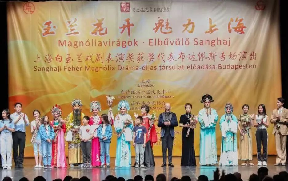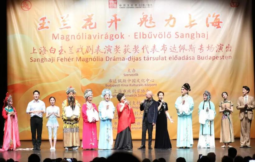 “玉兰花开·魅力上海”上海白玉兰戏剧表演艺术奖获奖代表专场演出由布达佩斯中国文化中心、上海市戏剧家协会主办,中国驻匈牙利大使馆、上海市人民政府新闻办公室特别支持。专场演出上,京剧演员陈圣杰、杨亚男,昆曲演员黎安与张冉,越剧表演艺术家章瑞虹与方亚芬,沪剧表演艺术家华雯,为观众呈现了京、昆、越、沪等传统戏曲艺术的迷人魅力;女高音歌唱家王作欣、男中音歌唱家杨小勇,芭蕾舞演员吴虎生与戚冰雪,杂技演员张珂与魏郭俊,则以歌剧、芭蕾舞剧、杂技剧等多种戏剧艺术展现了中国戏剧的独特风采。演出在白玉兰戏剧奖主题歌《白玉兰之歌》的悠扬歌声中推向新高潮。这场精心准备、精彩上演、精致呈现的戏剧文化盛宴,带领匈牙利观众一起走进十里春风的魅力上海、玉兰芬芳的戏剧码头,感受底蕴深厚的海派文化、中国传统文化。观众席中,掌声、喝彩声此起彼伏,经久不息。