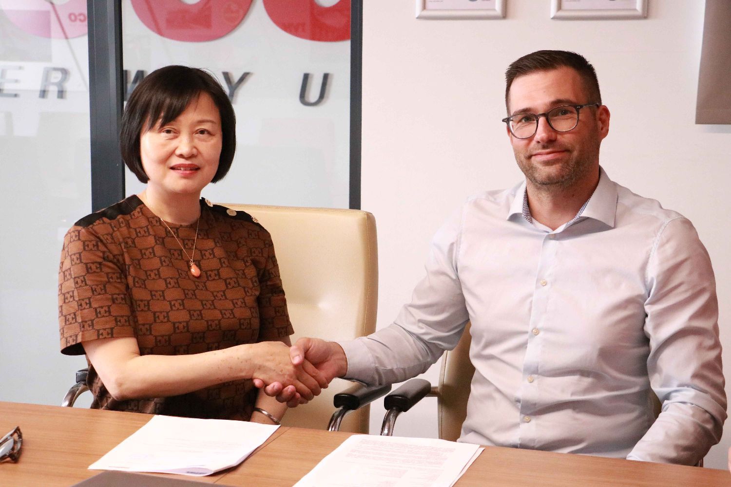 科邦公司总经理涂福莲女士(左)Mateco匈牙利公司客户代表Szabó Ádám(右)