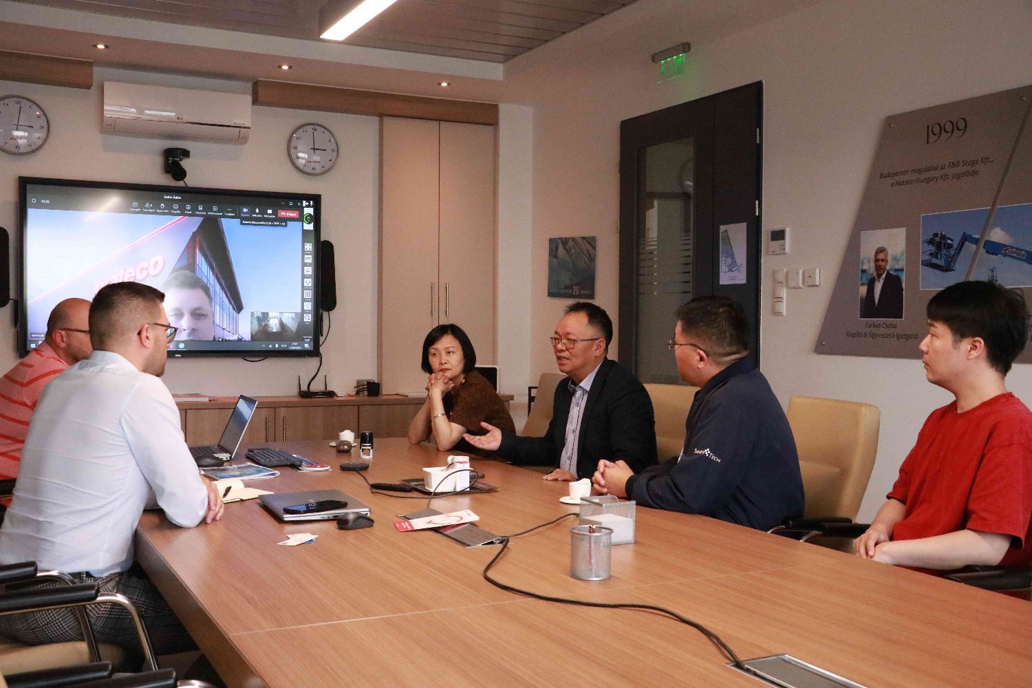 5月15日,科邦有限公司与匈牙利最大的机械设备租赁公司Mateco匈牙利公司签署战略合作协议。科邦公司总经理涂福莲女士、顾问周维辉先生、彩讯电视总经理谢军刚先生、Mateco匈牙利公司商务经理Zoltán Belincsák、区域总经理József Menyhárt及客户代表Szabó Ádám出席了签约仪式。