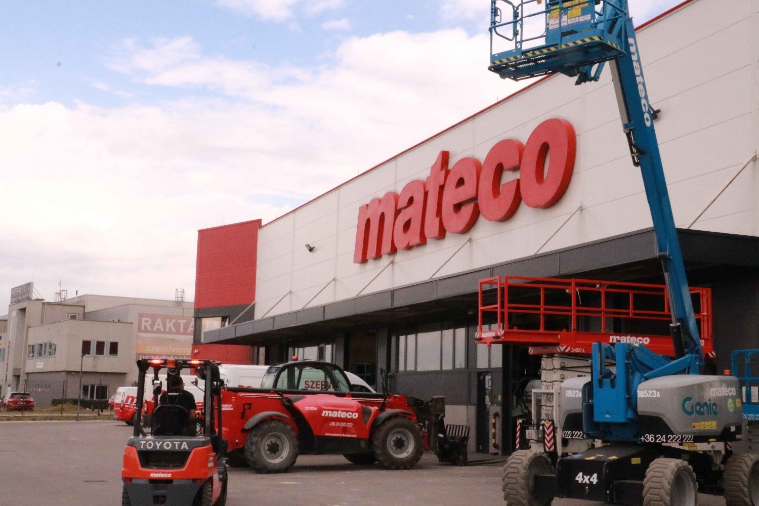 Mateco匈牙利公司是欧洲最大的机械设备租赁公司,在匈牙利拥有各类建筑及机电安装的设备2300台套,包括各类举高车、曲臂车、叉车等各种工作平台。Mateco匈牙利公司深耕匈牙利机械租赁市场,在布达佩斯、德布勒森、塞格德、佩奇都具有自有场点。有24小时服务队伍,车辆状态良好,不使用年限5年以上的车辆,并且提供车辆安全保险。目前,在中资的重点建设项目中发挥很重要的作用,是匈牙利几大建筑集团的核心合作伙伴。