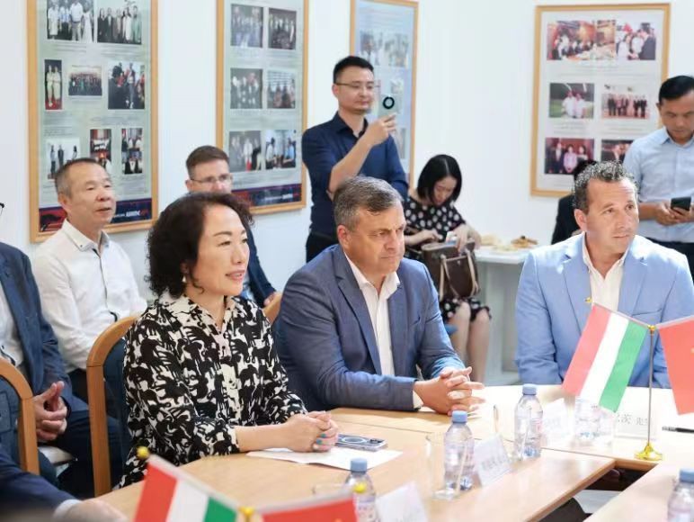匈牙利执政党青民盟副主席、匈牙利国会议员、匈牙利国会国防和执法委员会主席Kósa Lajos科绍·拉约什先生、以及豪伊杜-比豪尔州政府议会主席Pajna Zoltán保伊瑙·佐尔坦先生、匈牙利政府南部经济发展投资专员、国会议员Bányai Gábor班尼亚·伽伯尔先生、匈牙利全国学生企业协会主席dr.Fiák István菲阿克·伊斯特万博士、托卡伊酒区理事会监事会成员及托卡伊酒区评审委员会主席团成员Babits László鲍比茨·拉斯洛先生等匈方友人代表一起参加了座谈交流。