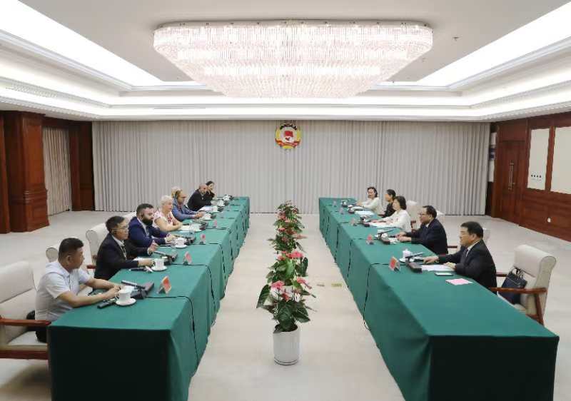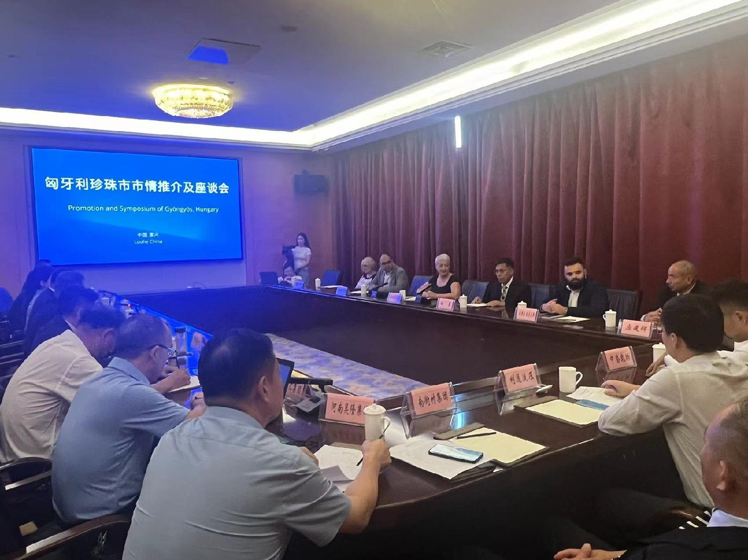 会上,孙敬林介绍了河南省的经济发展及对外开放,对外贸易,投资洽谈等情况,嘉柏瑞拉•森推介了珍珠市的资源禀赋,区位优势,产业发展等情况。匈牙利河南总商会会长白勇介绍了总商会基本情况,以及为促进中匈两国经贸文化交流合作所做的工作。双方围绕进一步加强珍珠市与河南省在经贸、文化、教育、医疗等领域合作进行了深入交流。大家一致认为,今年是中匈建交75周年,习近平总书记访问匈牙利时,将中匈关系提升为新时代全天候全面战略伙伴关系,引领中匈关系驶入“黄金航道”,要共享发展机遇,进一步促进客运直航,双园区建设、跨境电商以及在汽车、电子、生物医药、新能源、农业、教育、环保、物流和文化旅游等领域的交流合作,积极助力中匈传统友谊谱写新篇章,对外交流开创新局面。嘉柏瑞拉•森感谢河南省政协的热情接待,高度评价河南经济社会发展取得的巨大成就。她表示,珍珠市作为漯河市的友好城市,将以此为纽带,进一步拓展与河南省多层次,多领域,多渠道务实交流合作,共同促进两地经济社会迈向更高质量的发展阶段。
