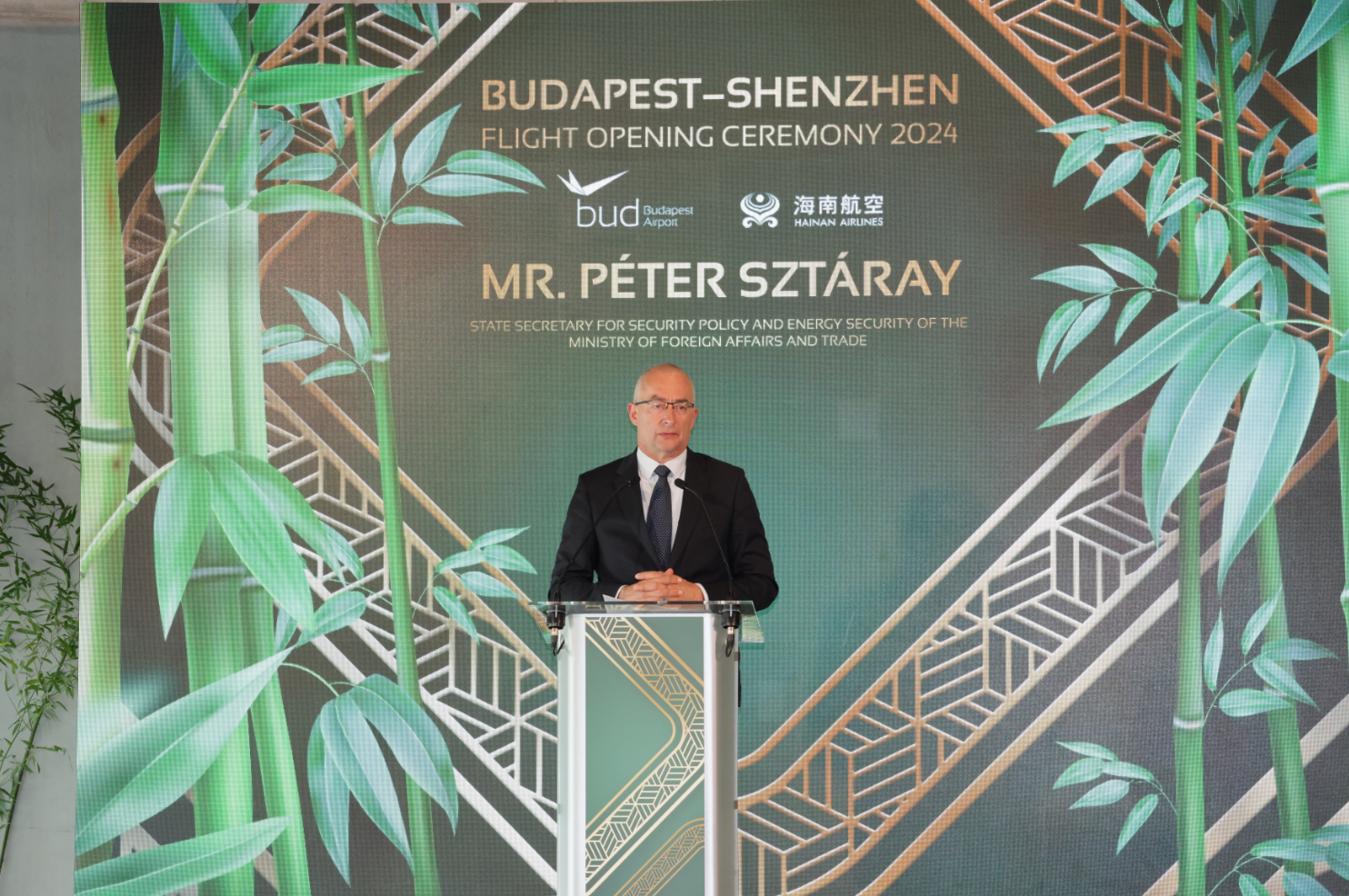 匈牙利外交与贸易部安全政策和能源安全国务秘书及布达佩斯机场董事彼得·斯塔雷博士表示:“我们很高兴看到海南航空布达佩斯—深圳国际航线的开通,相信它不仅将为中匈两国旅客带来更便捷、更愉悦、更享受的出行服务,更将推动两国新时代全天候全面战略伙伴关系迈上新台阶,不断续写友好合作新篇章。”