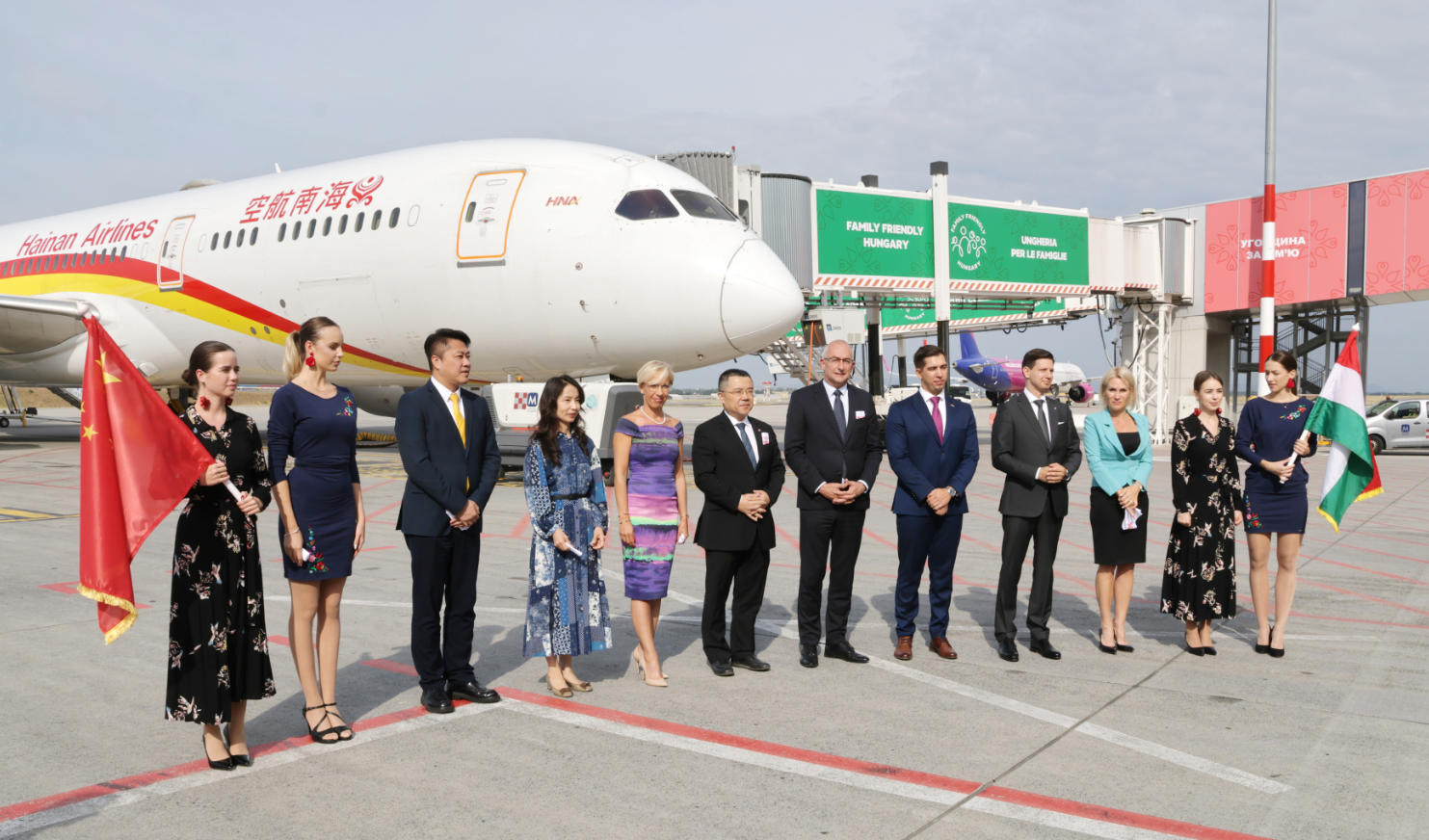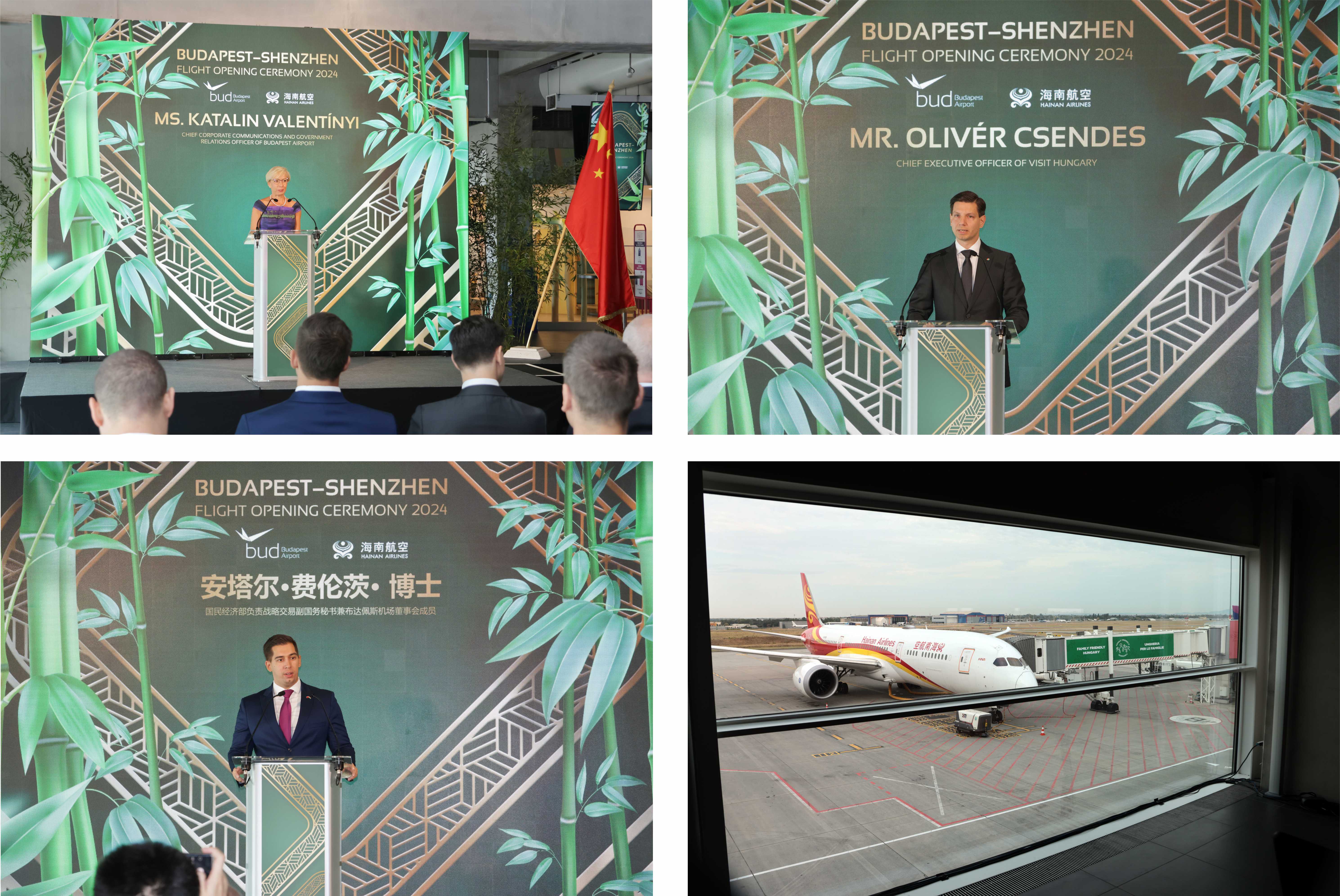 2024年8月2日,布达佩斯—本报讯:当地时间2024年8月2日上午,一架来自深圳的海南航空豪华客机在布达佩斯李斯特·费伦茨国际机场平稳降落,首航成功落地。为庆祝这一激动人心的时刻,布达佩斯—深圳直飞航线首航仪式在布达佩斯李斯特·费伦茨国际机场隆重举办,中国驻匈牙利大使龚韬先生、布达佩斯机场企业公关与政府关系中心首席卡塔林·瓦伦蒂尼女士、匈牙利旅游局首席执行官奥利弗·切戴煦先生、匈牙利国民经济部战略交易副国务秘书费伦茨·安塔尔博士、匈牙利外交与贸易部安全政策和能源安全国务秘书彼得·斯塔雷博士、海南航空运行副总裁阎波先生及中匈优秀企业家代表和海内外媒体等共同出席仪式,共同庆祝布达佩斯—深圳航线的盛大启航。