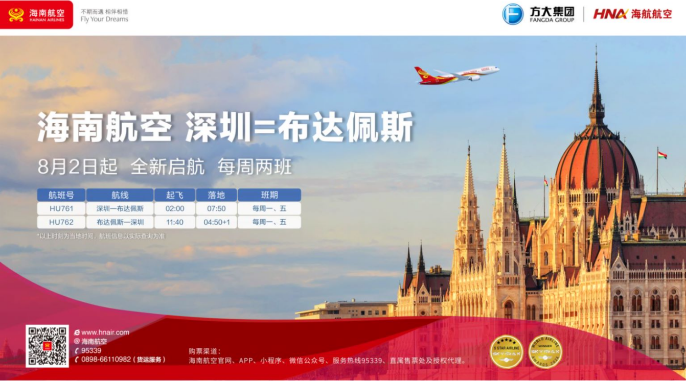 海南航空运行副总裁阎波表示:海南航空与布达佩斯这座城市也有着深厚的历史渊源,早在2004年8月海南航空开通的第一条定期国际航线就是布达佩斯—北京,这条航线的开通标志着海南航空在国际航线领域的起步,为海南航空后续的国际化发展奠定了基础。今年是中匈建交75周年,中匈交往愈加密切,中匈友谊历久弥坚。相信布达佩斯—深圳航线的成功运营,不仅能够为中匈两国的旅客带来更便捷、更愉悦、更享受的出行服务,更能为中匈之间的人文交流与各领域合作搭建出新的空中桥梁。