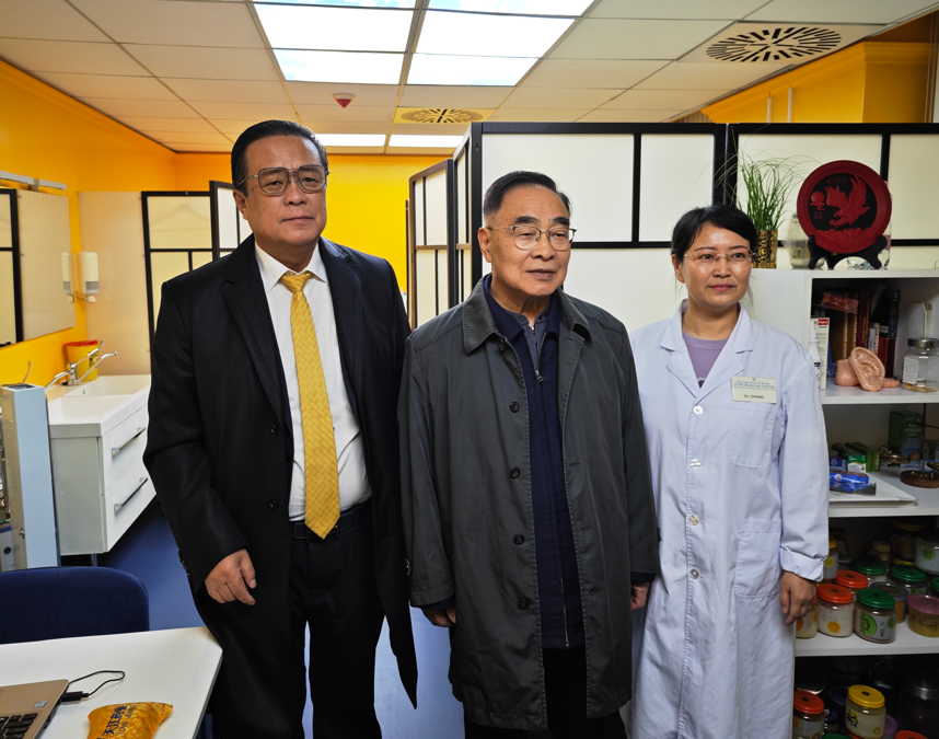 新导报讯:2024年10月21日至23日,中国工程院院士、国医大师、人民英雄国家荣誉称号获得者张伯礼院士率团访匈,先后走访了匈牙利东方国药集团、中东欧中药种植培训基地和匈牙利岐黄中医药中心,并与匈牙利中医药界专家进行了友好座谈。张院士深情回顾了在武汉应用中医药抗击疫情的峥嵘岁月,三个月用中医药及“三方三药”、清肺排毒汤等治愈了无数患者,康复期采用中医药帮助减少了许多后遗症的发生,对于老年体弱患者,配合用人参汤效果更显著。张院长还就“辩证论治与辨病论治”分享了临床针对心血管疾病,通过“辩证论治”使用三仁汤和真武汤辩证治疗的医案。