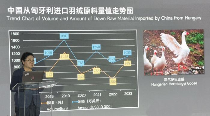 中国羽协名誉理事长、国际羽绒羽毛局(IDFB)副主席姚小蔓女士主题演讲(拍摄:胡颖)