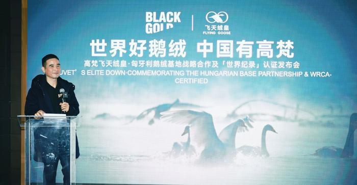 在本次飞天鹅绒发布会上,高梵集团创始人兼董事长吴昆明着重强调了品牌对匠心工艺和奢品标准的坚持,从原料的筛选到成品的诞生,高梵对鹅绒的极致追求,确保了产品品质的卓越。高梵不仅在国内深耕,更在全球范围内布局鹅绒基地,致力于将奢暖体验传递至世界各地,成为连接不同国家和地区的温暖纽带。”世界好鹅绒,中国有高梵“,他语气坚定地说道,这不仅是高梵的品牌愿景,也是对于肃清羽绒行业乱象的决心。