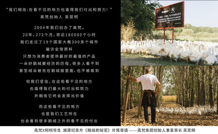 通过布局匈牙利鹅绒专属基地的战略举措,高梵进一步构建飞天鹅绒生产体系,在全球鹅绒产业中树立了新的品质标杆,并将鹅绒的价值转化为品牌价值,为消费者提供了更多高品质的羽绒服选择。