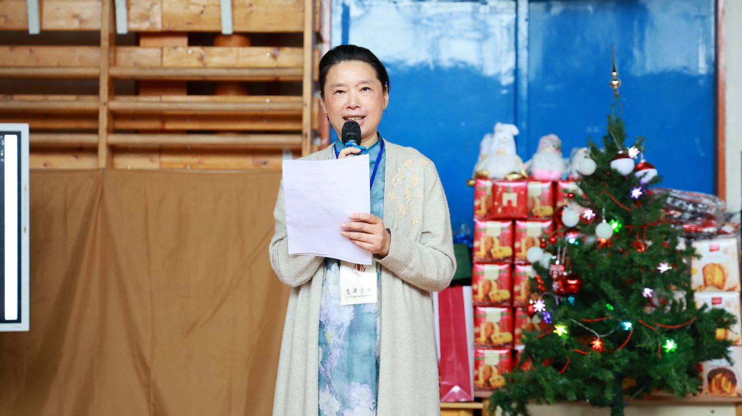 匈牙利慈济壹佰基金会代表沈一萍女士用匈语,简单介绍了慈济壹佰基金会的宗旨,十年来慈济爱的脚步从不停息,希望更多人了解慈济,并加入慈济大爱的行列,用个人有限的生命化为爱的源泉生生不息。沈一萍还介绍了带来的礼物和文艺节目。