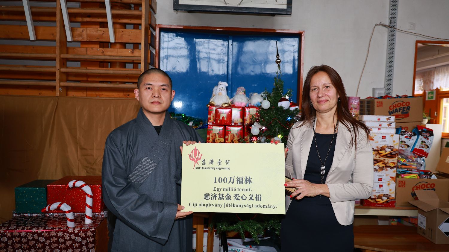 新导报讯:2024年12月13日,匈牙利慈济壹佰基金会向布达佩斯十区Kőbánya综合幼儿园、小学、技能发展学校及特殊教育机构送去圣诞、新年礼物以及100万福林善款。