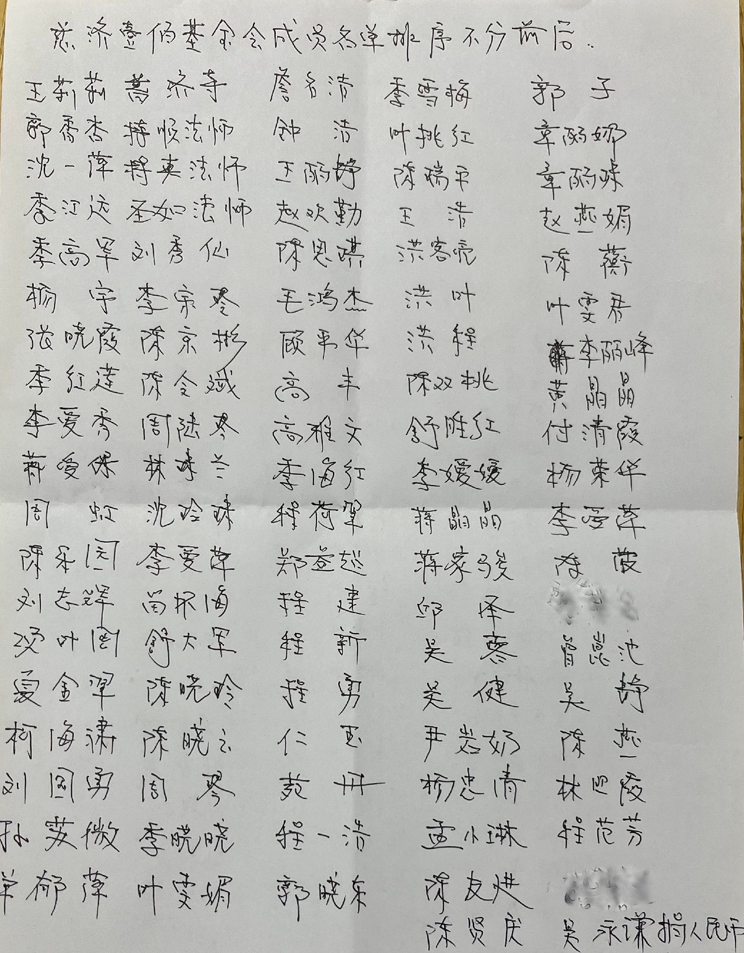 慈济壹佰基金会成员名单:(排序不分前后)