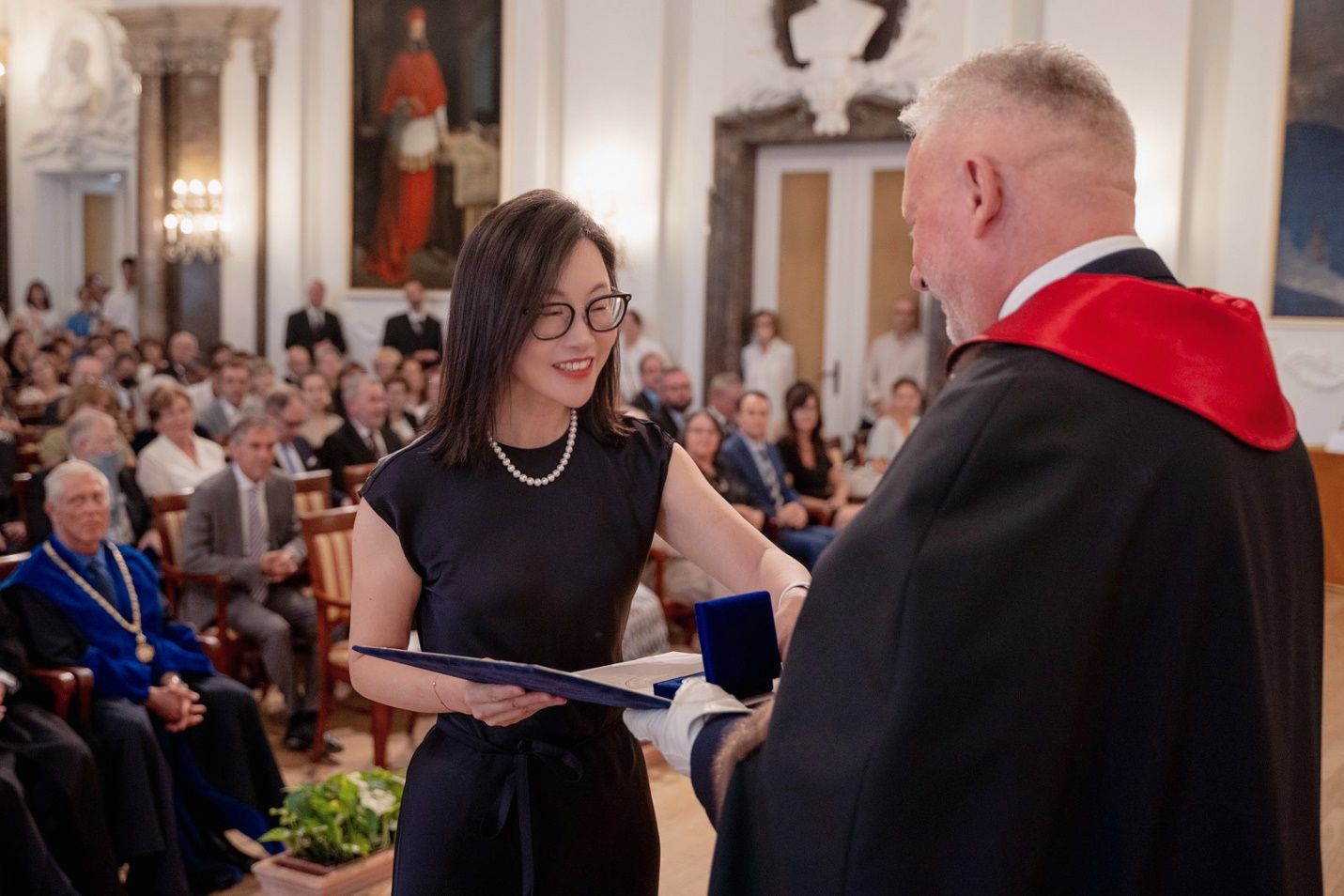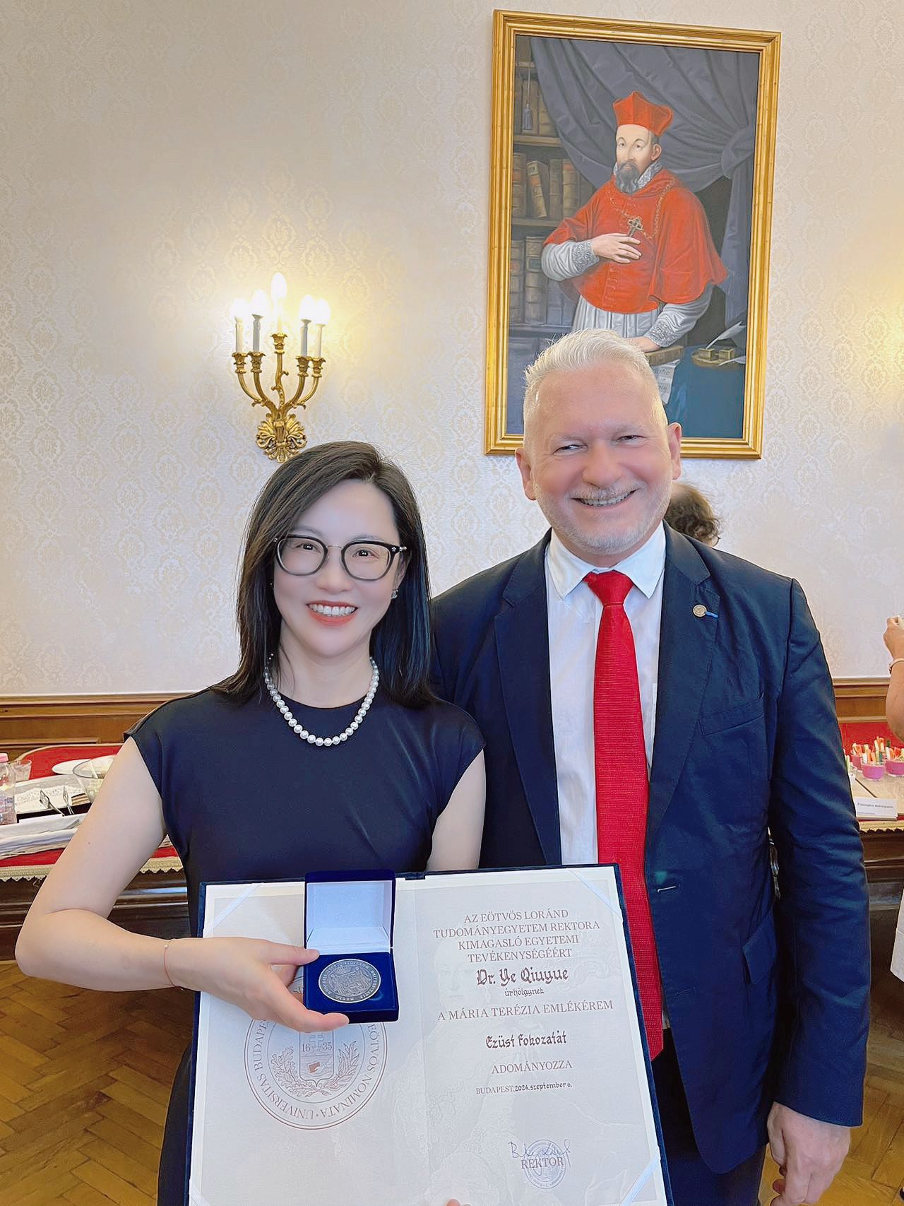 “玛丽亚·特蕾西亚皇后奖”是罗兰大学为表彰在知识、文化和社会贡献方面表现卓越的个人而设立的最高荣誉之一。叶秋月因其十年来在学术研究、文化传播和教学上的成就而获此殊荣。颁奖典礼上,罗兰大学校长Dr.Borhy László教授评价道:“叶秋月教授是一位杰出的学者,她的努力跨越了语言和文化的界限,将匈牙利与中国更加紧密地联系在一起。”