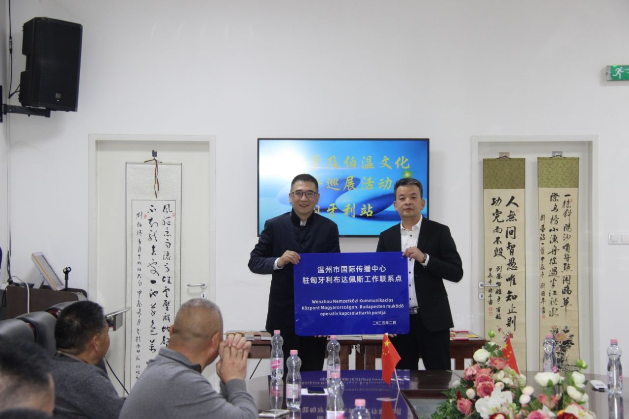 新导报讯:2025年2月15日下午,温州市新闻传媒中心总编辑柳深扬率团莅临匈牙利瑞安同乡会馆,在馆内举办了“温州学及伯温文化海外巡展”主题活动。