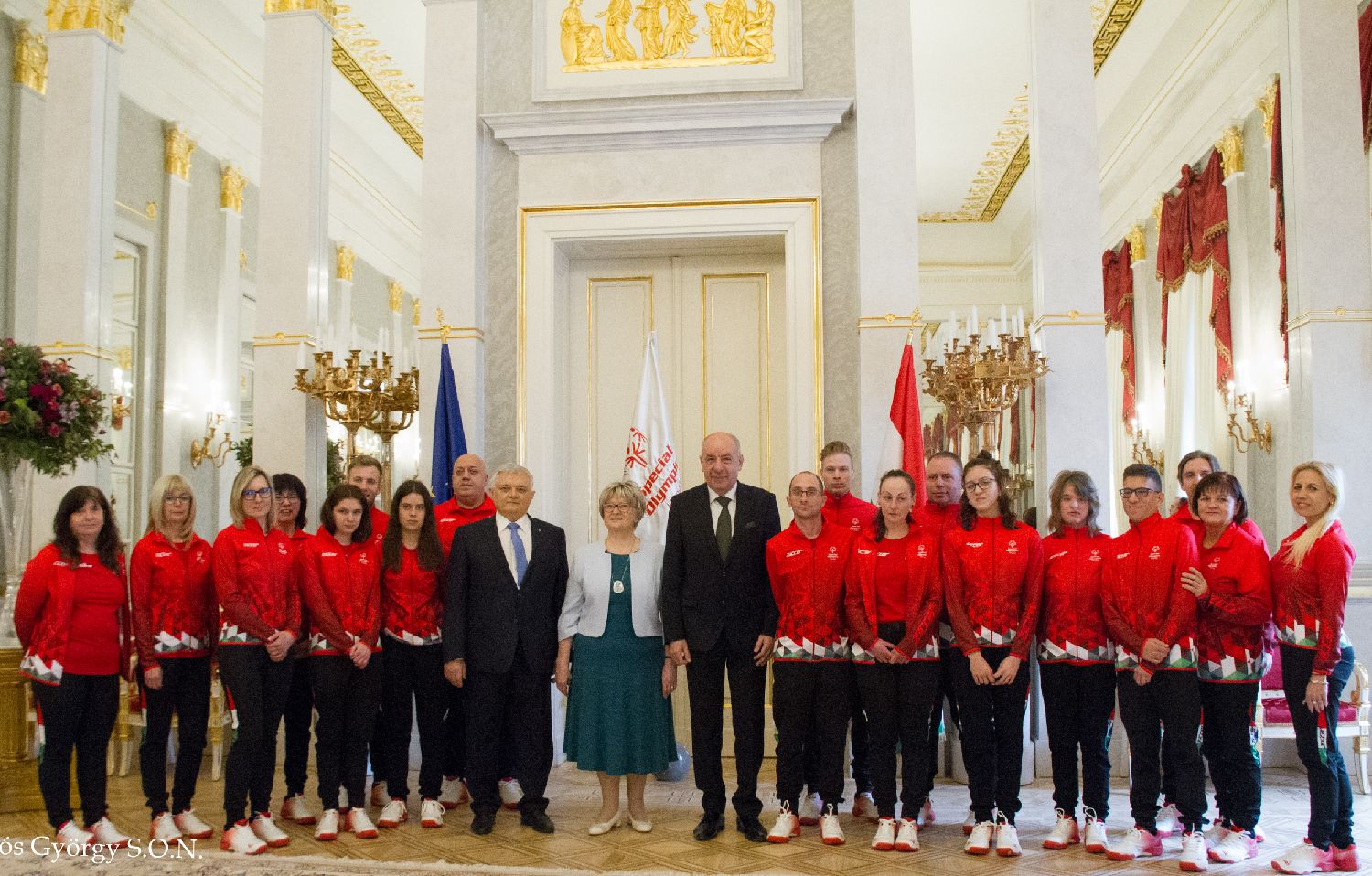 2025年2月24日,匈牙利总统舒尤克·道马什先生携夫人纳吉·苏珊娜女士一起,亲自出席在山多尔宫总统府举办的匈牙利特奥代表队宣誓仪式,为将于3月参加世界冬季特殊奥林匹克运动会的选手们送行,同时热情接见了魏翔、黄晨凤夫妇,感谢他们三十年来对匈牙利特奥运动的支持和付出。