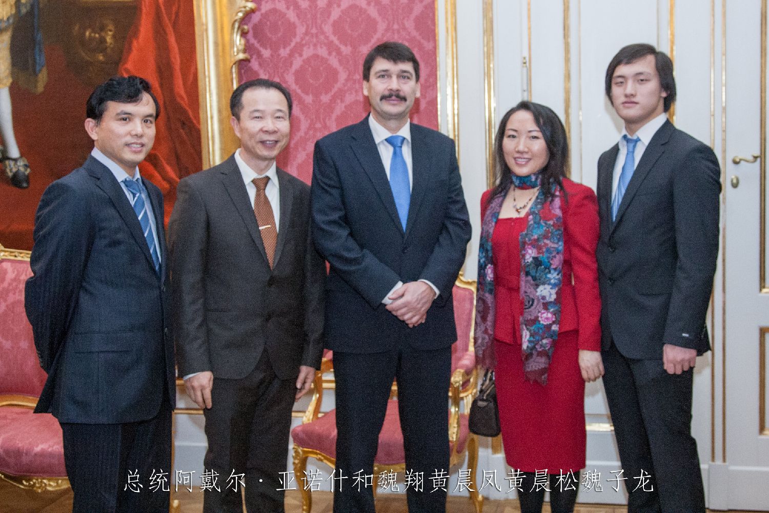 魏翔、黄晨凤夫妇和舒尤克·道马什总统及夫人及前体育部长塞克雷斯·帕尔合影。