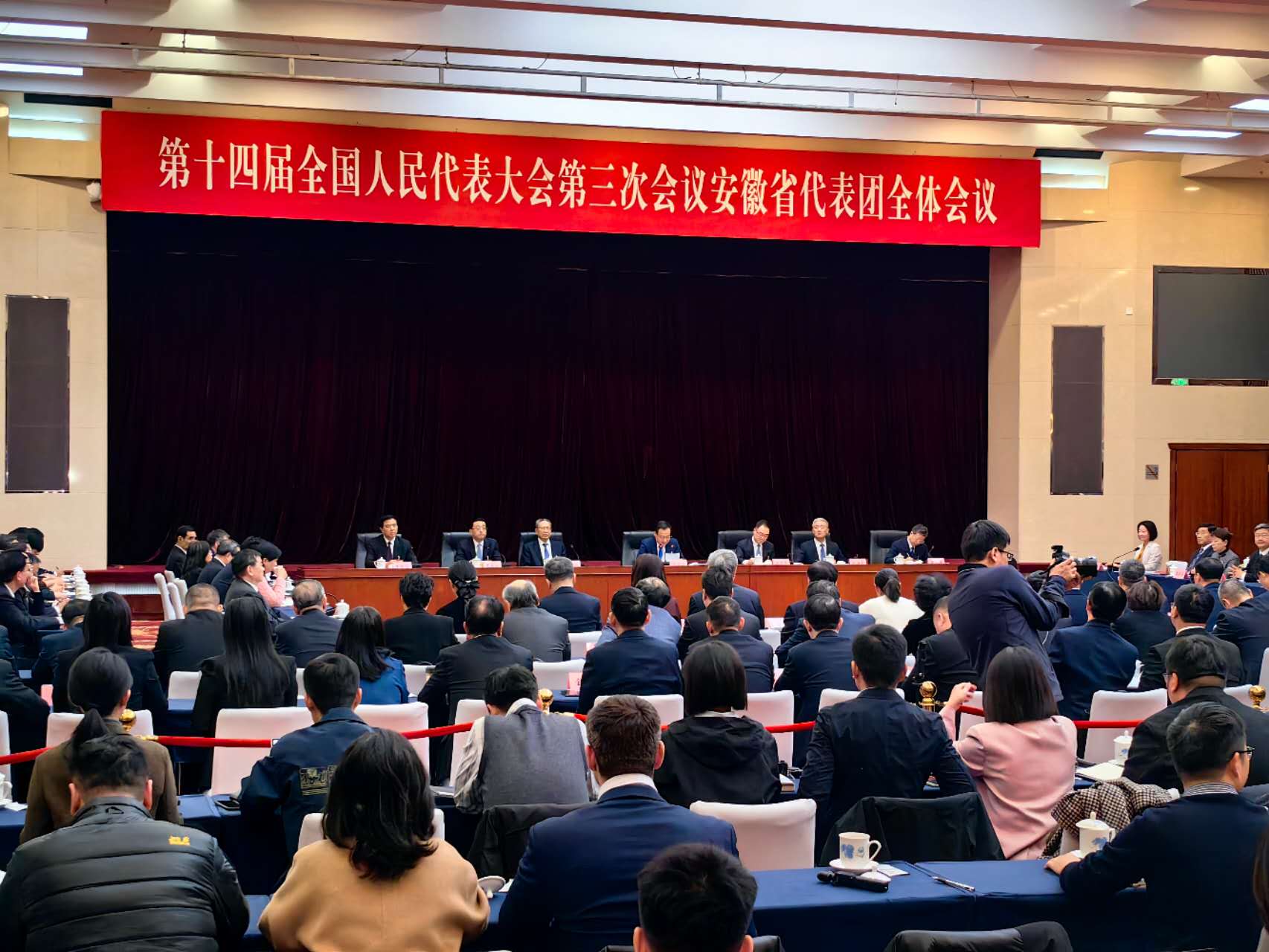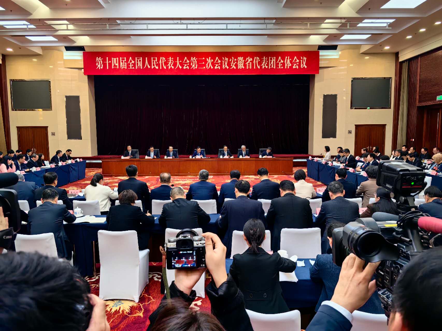 3月6日下午,十四届全国人大三次会议安徽代表团举行团组会议,中外媒体把镜头投向安徽代表团,深入了解美好安徽建设发生的新变化、取得的新成就。
