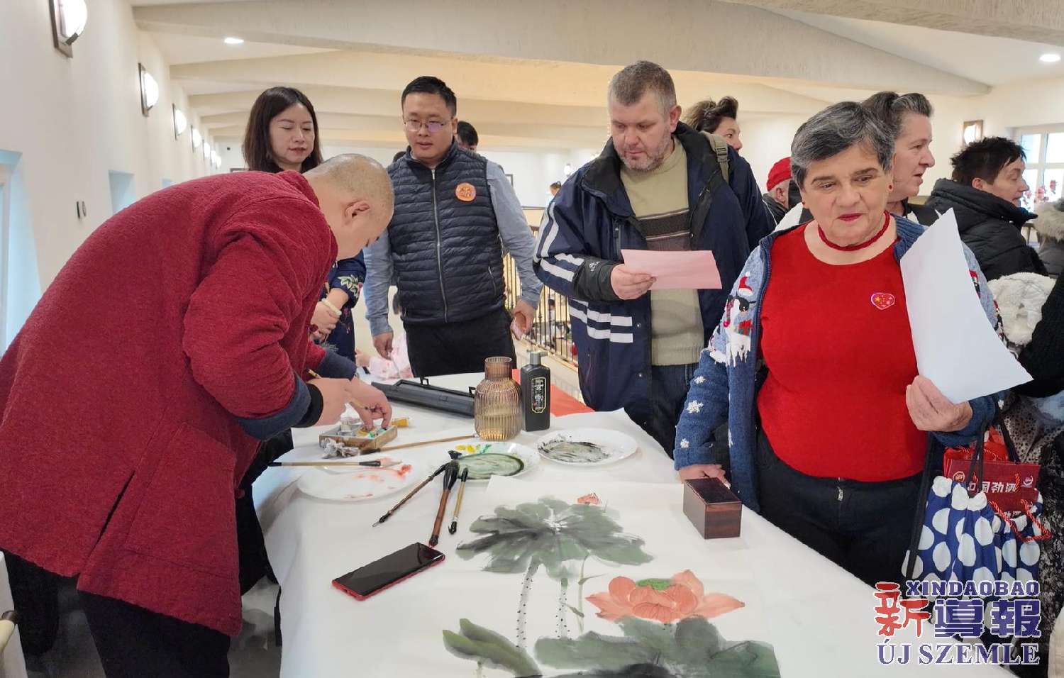 文化展区里人头攒动,到场民众驻足在各自感兴趣的展位前体验各类项目,购买文创产品,领会中华文化。大家着汉服,学拓艺,观书法,赏国画,尝茶味,品酒香。在展位项目与节目演出的加持下,欧陆科技产业园一片春色,马扎尔土地上拂过中国风,扬起中匈人民共乐之情,拂开中匈文化交流之窗。