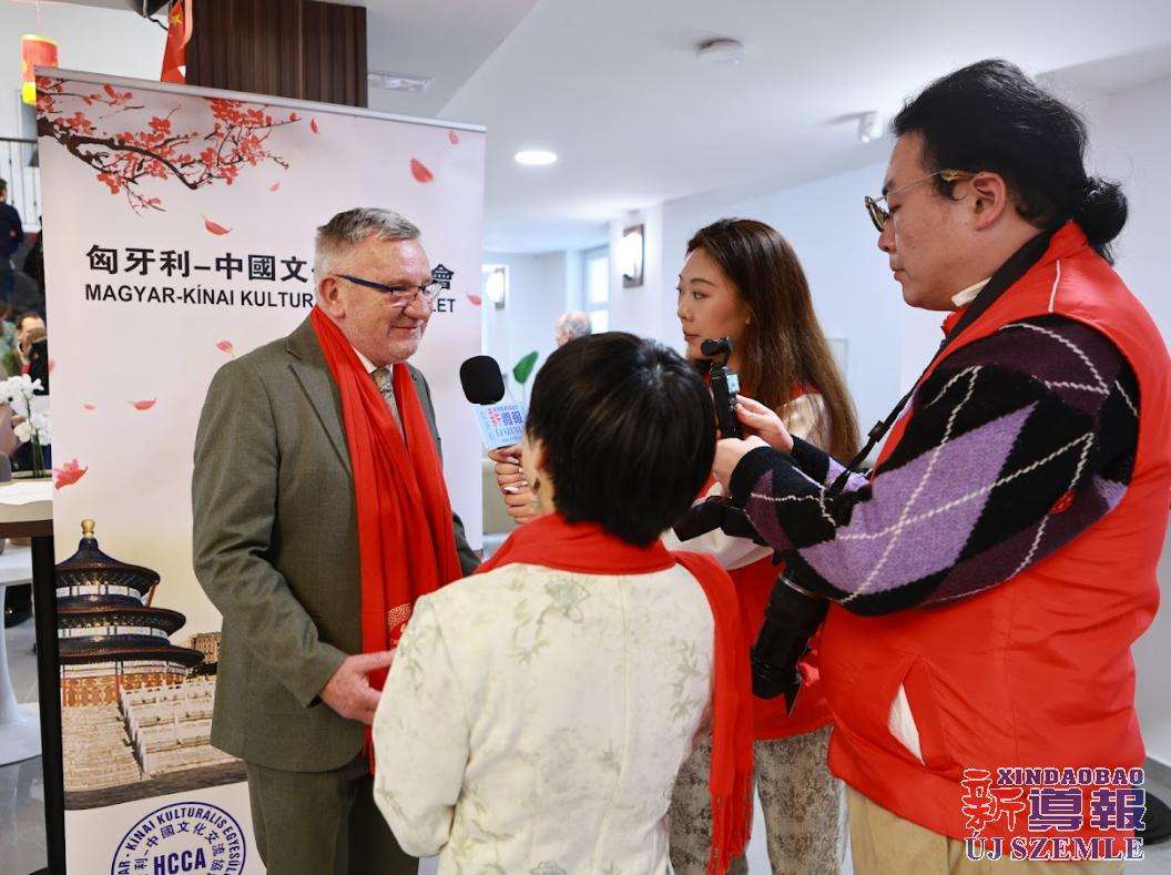 匈牙利-中国文化交流协会副会长、新导报社社长耿洁用中匈双语介绍了到场嘉宾,会长滕维杰用匈语致简短欢迎词。
