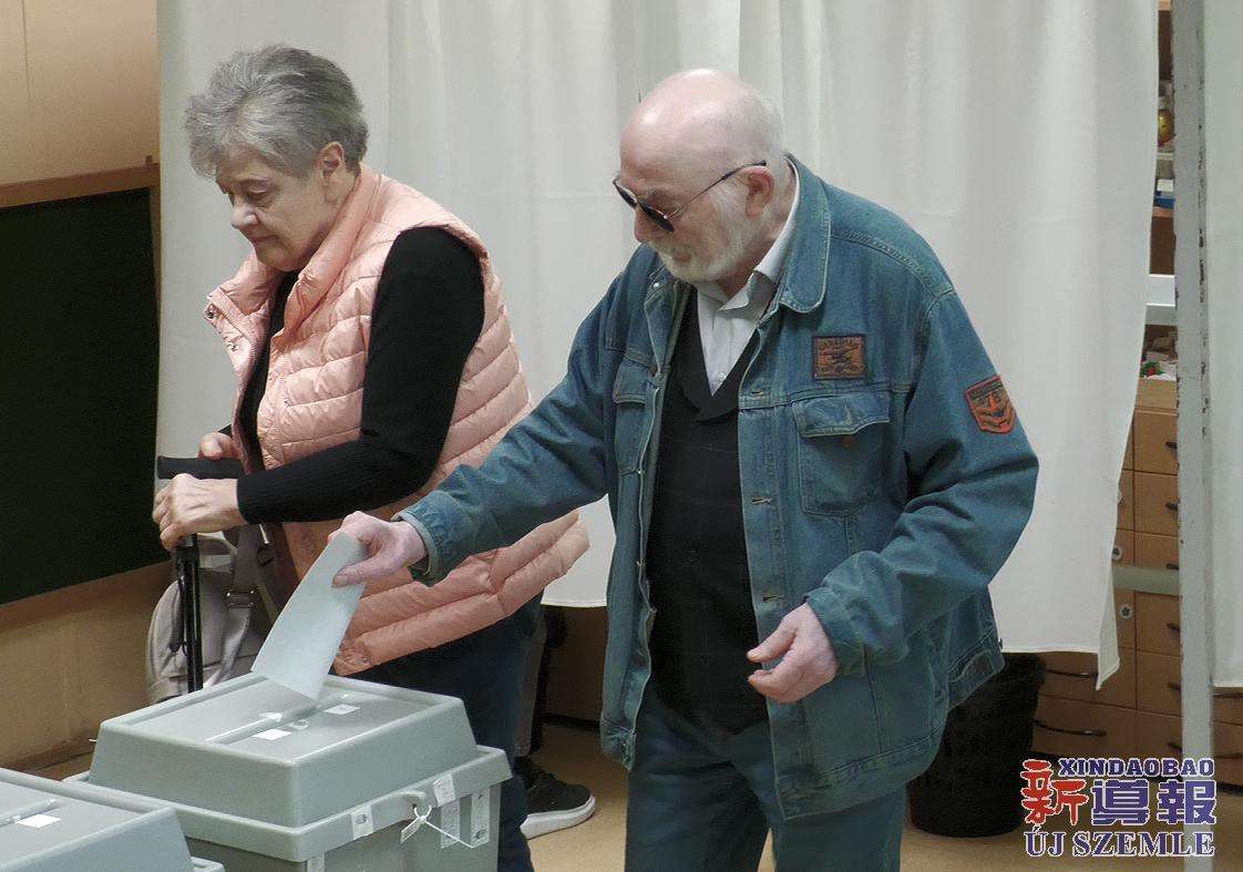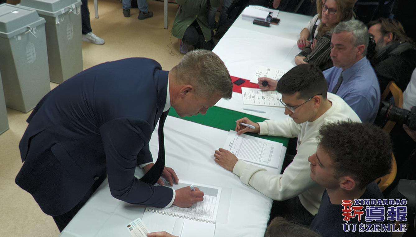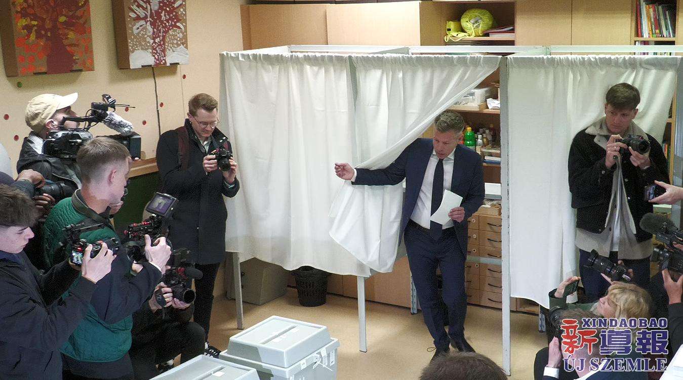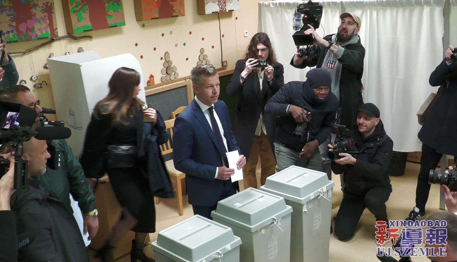 【图集】匈牙利国会选举投票日:毛焦尔·彼得投票并举行记者会