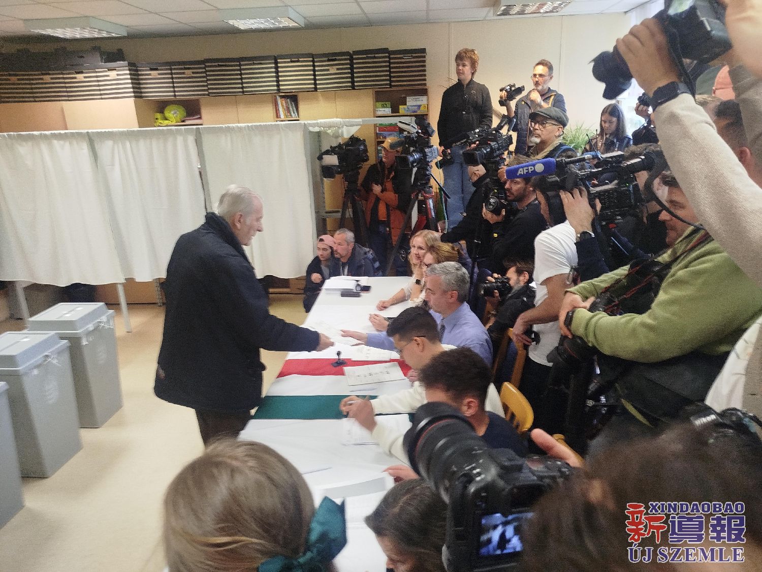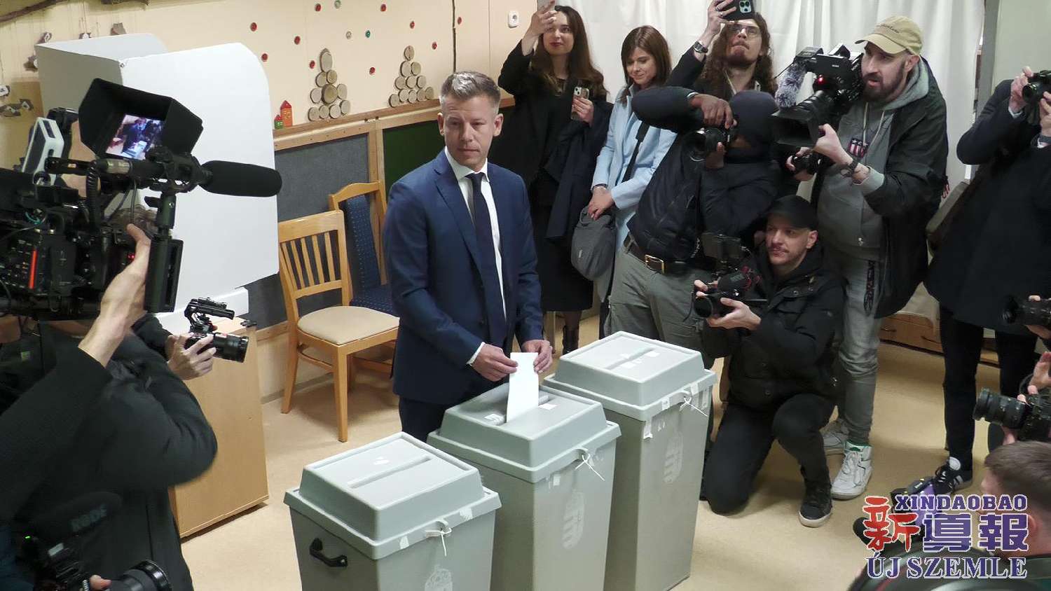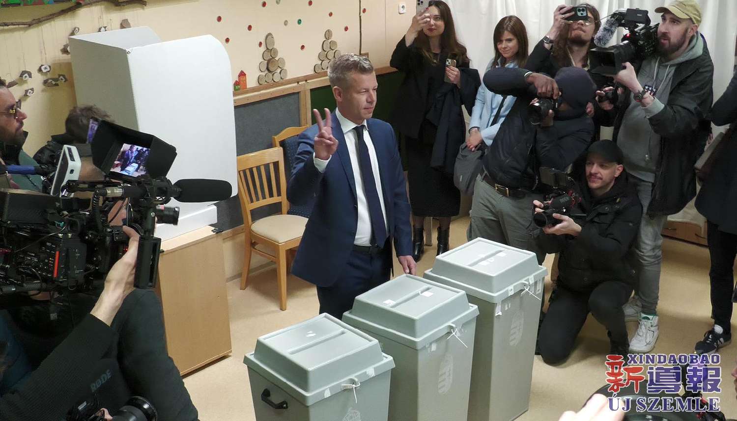 【图集】匈牙利国会选举投票日:毛焦尔·彼得投票并举行记者会