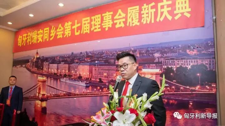 匈牙利瑞安同乡会第七届会长徐飞帆发表就职演讲