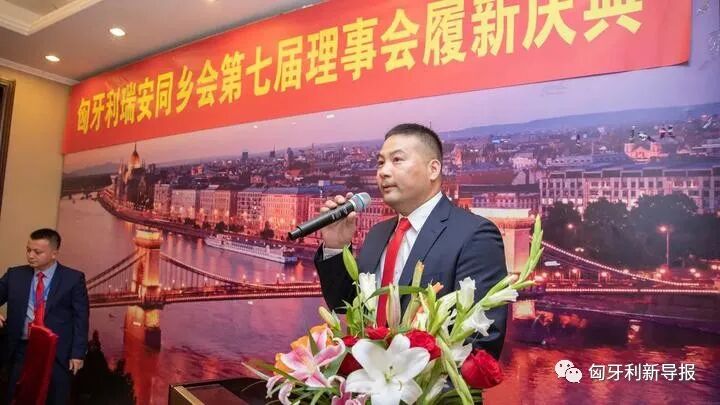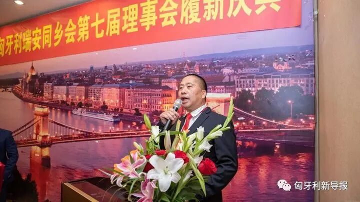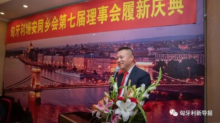他说,我们第七届理事会马上就要正式接管瑞安同乡会的日常事务了。作为会长,我深感责任重大。因为,我们这一届理事会的执会目标,是继往开来,不辱使命。因此,秉承本会爱国爱乡、促进中匈两国人民友好关系的创会宗旨,在中国驻匈使领馆的领导下,背靠祖国,进一步地团结乡亲,在发展自身事业的同时,与匈牙利华界其他兄弟社团一起,努力做好有利于中匈两国人民交流的文化、慈善工作。为增进中匈两国人民友谊,为繁荣中匈两国经济,为加强匈华社区的进步、和谐建设,将是我们这一届理事会应尽的职责,我们将为此奋力作为。(全文另发)