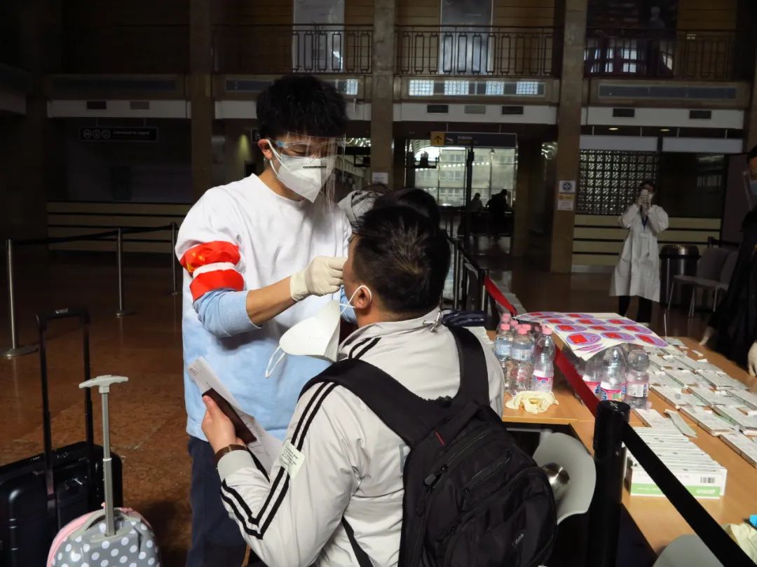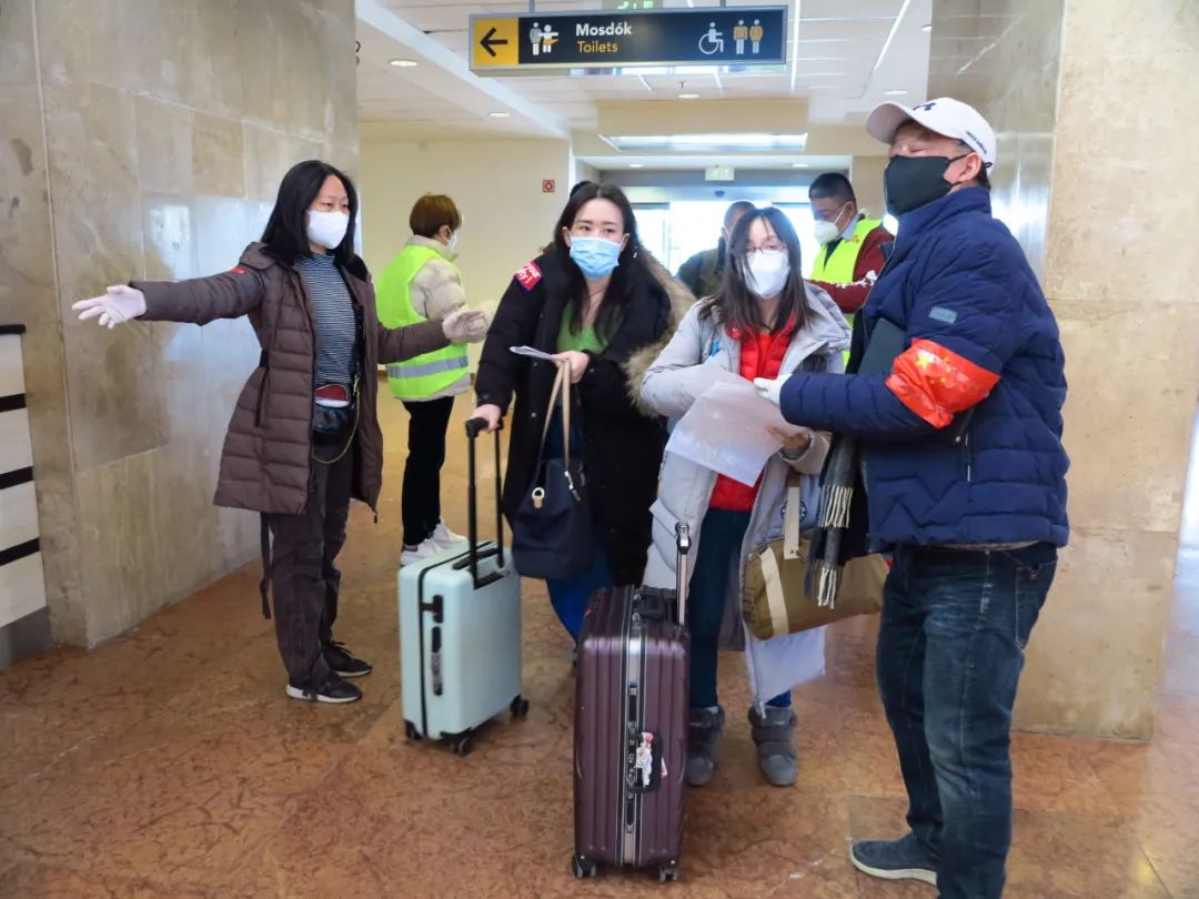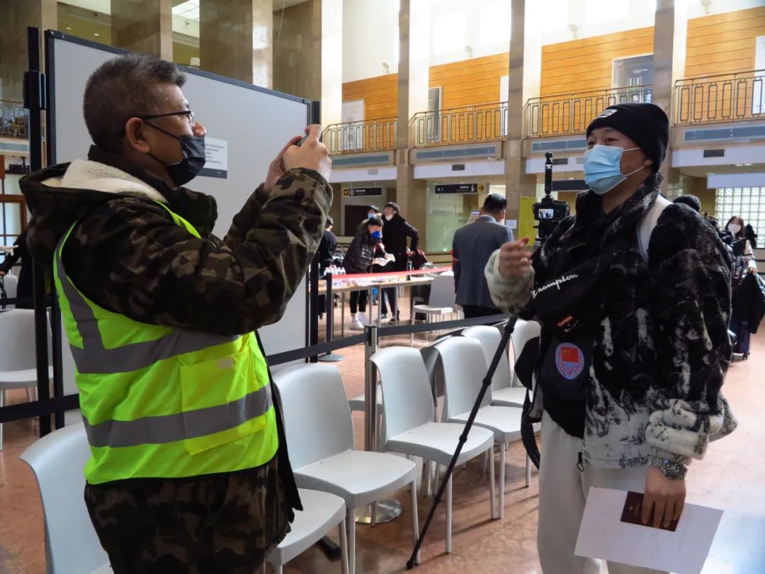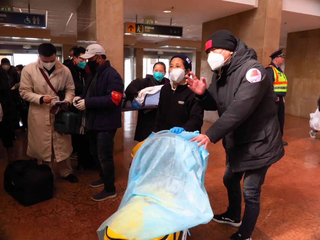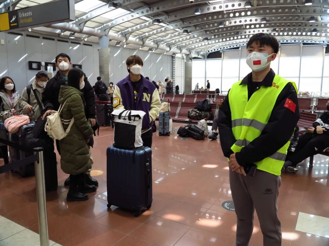 3月11日上午开始,中国驻匈大使馆领侨处主任李克震,领事马昕、白婕等工作人员带领侨界、全匈学联志愿者们,在航站楼内核查旅行文件、核算检测证明、快速现场抗原检测、分发口罩和防护服等,使得整个值机过程井然有序。