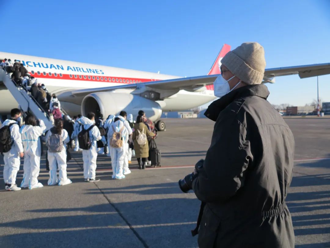 【匈牙利首架撤侨临时航班顺利起飞】齐大愚大使亲往送行