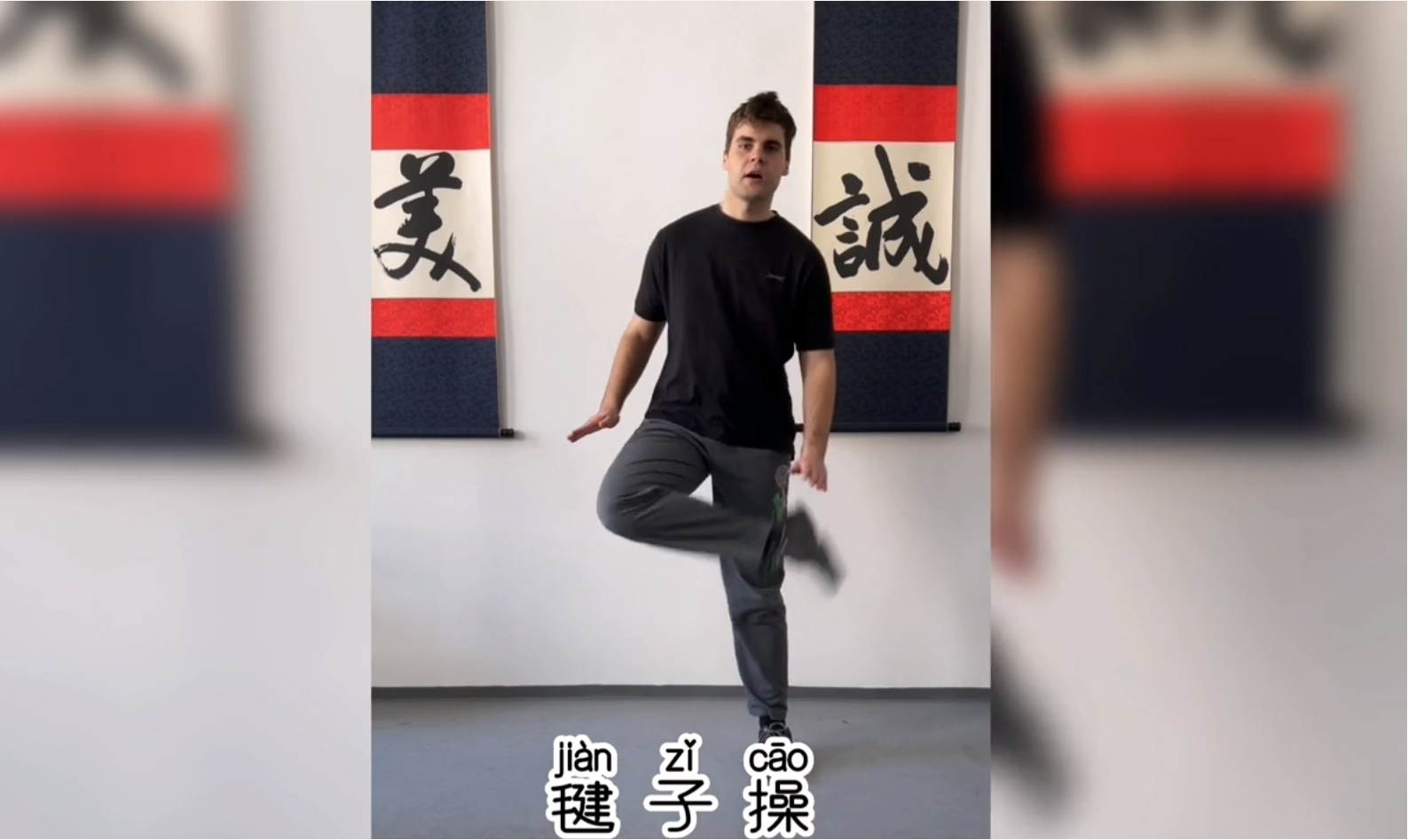 (何马可表演当下流行的毽子操)