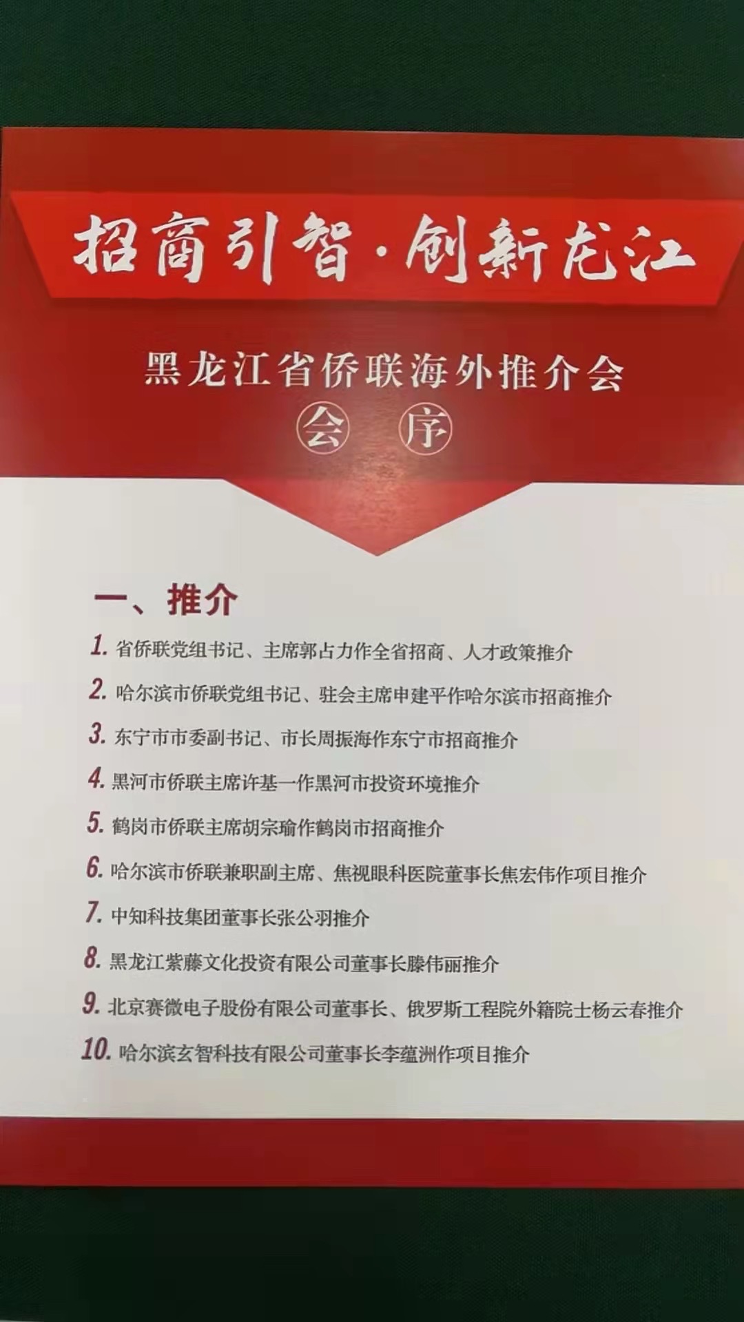 6。哈尔滨市侨联兼职副主席、焦视眼科医院董事长焦宏伟作项目推介。