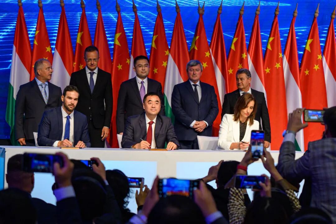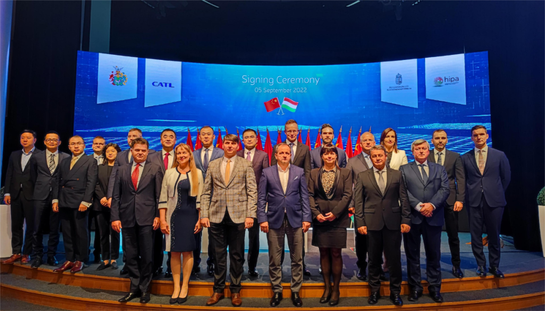 9月5日,宁德时代匈牙利时代新能源电池产业基地项目购地协议签署仪式在匈东部城市德布勒森举行。匈外长西雅尔多、驻匈使馆临时代办杨超见证签署并致辞,宁德时代董事长曾毓群线上致辞。德布勒森市副市长巴尔查、宁德时代董事长助理陈峻伟、使馆刘波商务公参等百余名嘉宾出席。