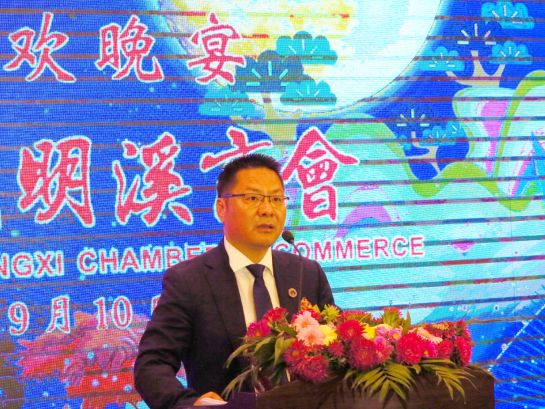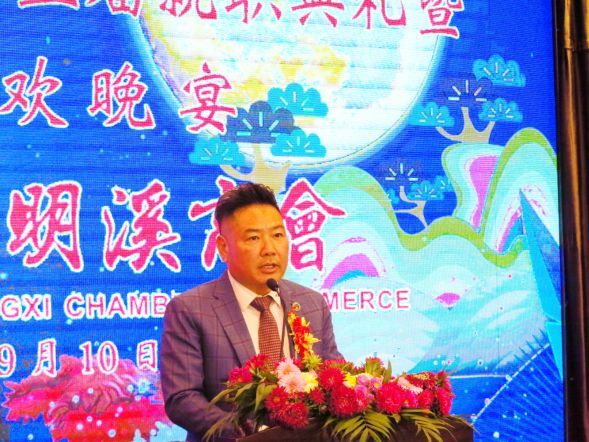 匈牙利福建明溪商会第四、第五届连任会长曾定发致词。(摄影:新导报记者 文采)