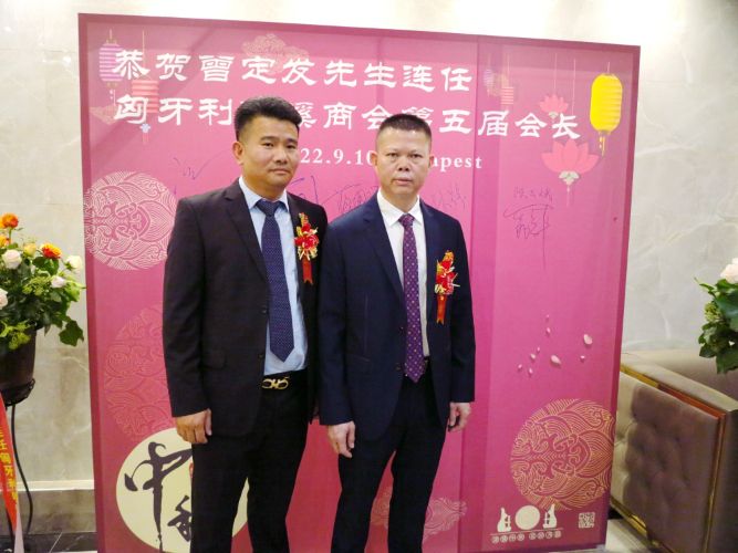 专程从意大利赶来的欧洲福建联合会第二届轮值主席、旅意福建华人华侨同乡总会荣誉会长胡建兵发表致词说:“很高兴能够在这金秋九月、硕果累累的季节欢聚欧洲古城布达佩斯,共同庆祝匈牙利明溪商会换届盛典。在这里,我向曾定发会长表示热烈的祝贺。匈牙利明溪商会长期关心支持欧福联会务发展,是欧洲福建侨团联合总会重要组组成部分,是我们共同成长的好伙伴。匈牙利明溪商会自成立以来,历经十五载,在历任会长和会员的精心耕耘下不断壮大。特别是在曾定发会长的带领下,拥有自己的会馆,为会员搭建了一个温暖的家。疫情爆发后,曾定发会长积极呼吁商会捐款捐物,为抗击海内外疫情贡献自己的力量。在乌克兰撤侨中奉献了精神,做了大量有益的工作,赢得广泛赞誉。回望过去,让我们收获满满;展望未来,让我们激情奋发,信心满满。我相信在曾定发会长的带领下,在会成员的共同努力下,商会将在凝聚旅匈明溪籍侨胞力量、在促进侨胞和当地社会经济的建设与发展,维护祖国和平统一大业等方面做出更多的贡献。最后祝匈牙利明溪商会蒸蒸日上、会员事业宏图大展!祝大家中秋节快乐、阖家幸福!”