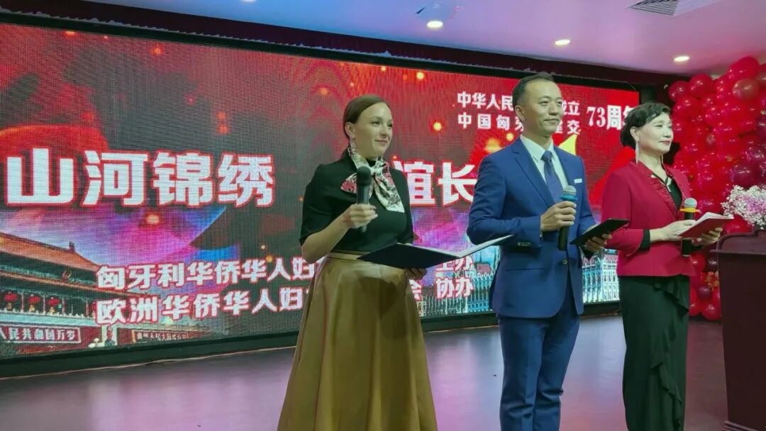 匈牙利华侨华人妇女联合总会副会长沈一萍女士宣读了使馆贺信:值此中华人民共和国成立73周年暨中匈建交73周年之际,欣闻贵会将举办“山河锦绣友谊长存”庆祝活动,预祝活动圆满成功,并向贵会及现场来宾致以节日问候!风雨兼程铸辉煌,国泰民安添锦绣。在中国共产党的坚强领导下,新中国已走过73年光辉历程。站在新的历史起点上,我们愿与旅匈华侨华人一同砥砺前行,为中华民族伟大复兴不懈奋斗,为中匈友谊再添华彩!驻匈牙利使馆领侨处2022年9月26日。