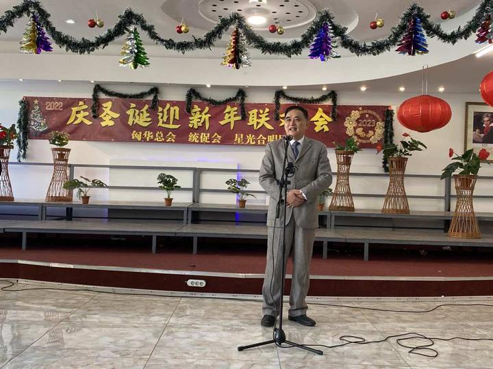 在圣诞节新年即将来临之际,匈华总会执行主席刘文建代表匈华总会主席、匈牙利中国和平统一促进会会长余美明对大家的到来表示热烈欢迎,和良好的节日祝愿,祝福大家圣诞快乐,新年进步,工作顺利,阖家幸福!
