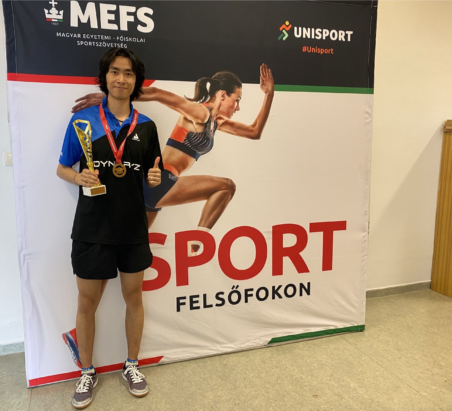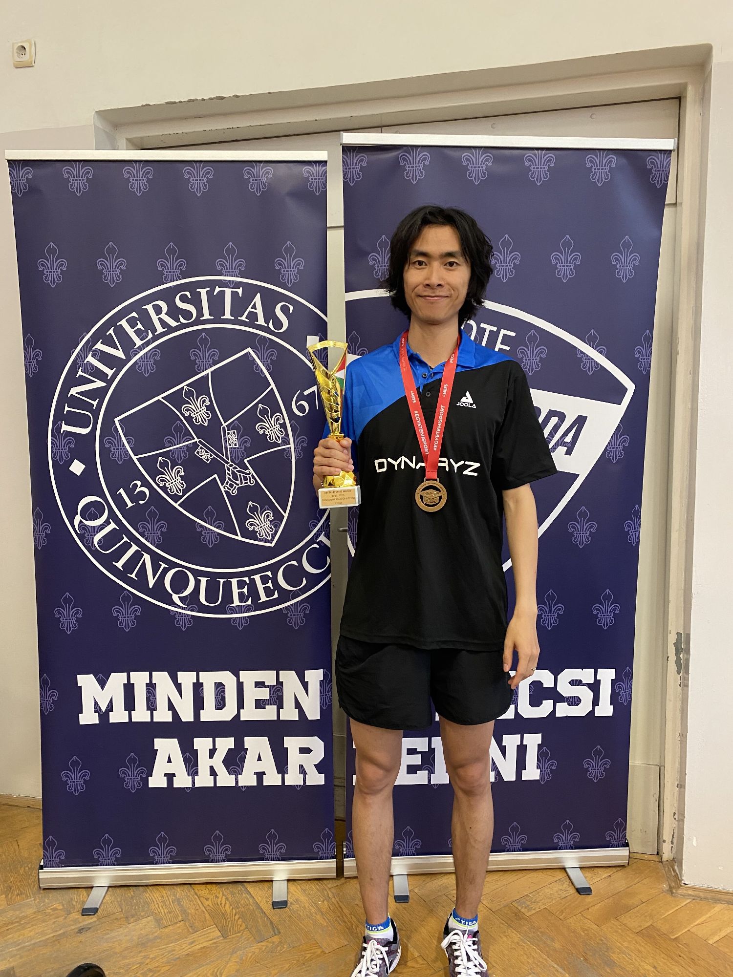 中国留学生沈忱获得”匈牙利全国大学生乒乓球锦标赛“男子单打冠军(业余组)