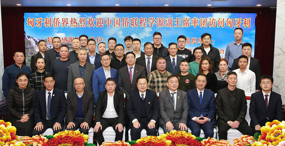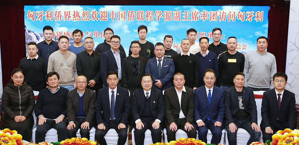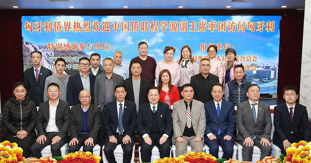 中国侨联副主席程学源率领中国侨联访匈代表团一行与匈华侨团合影留念。