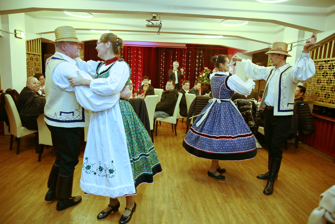 Tatabanya市矿工老年舞队的匈牙利民族舞蹈表演。