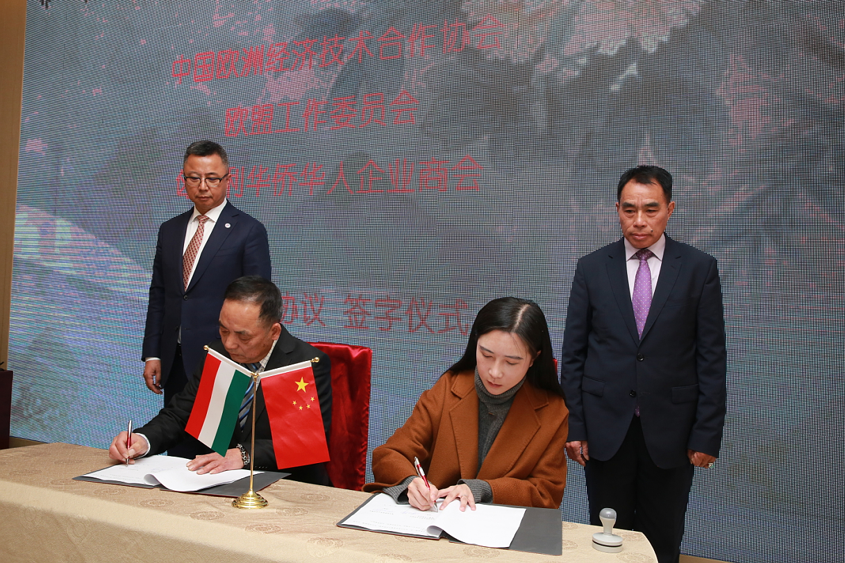 新导报讯:2023年12月7日,中国欧洲经济技术合作协会欧盟工作委员会(以下简称“中欧协会欧委会”)与匈牙利华侨华人企业商会(以下简称“匈牙利华资商会”)就推动中欧合作领域高质量发展、中匈资源整合、海外深层次合作对接、业务拓展,在布达佩斯九龙大酒店内举行了合作框架协议签字仪式。